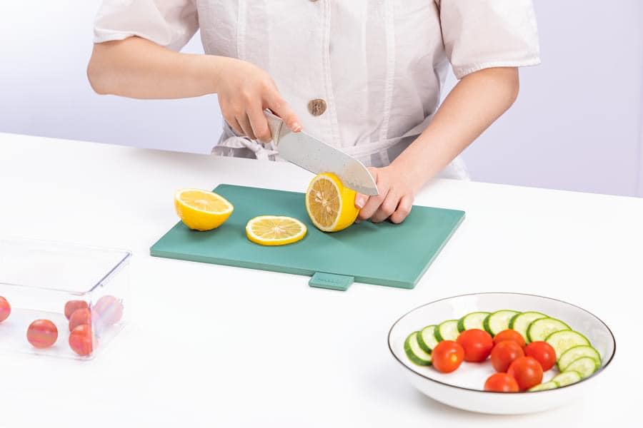 * THÔNG TIN CHI TIẾT SẢN PHẨM - Dòng sản phẩm Folio tiếp tục xu hướng màu xanh lá cây, bốn chiếc thớt có mã màu này đi kèm với một hộp đựng có đường