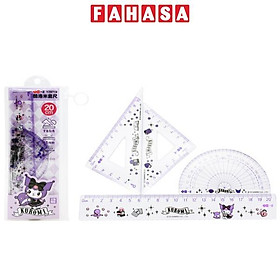 Bộ thước gồm: 1 thước thẳng 20cm, 1 thước đo độ, 2 thước eke. Sản phẩm được làm bằng chất liệu nhựa cứng siêu bền, thân trong, in dãy vạch số chính xác và sắc nét.