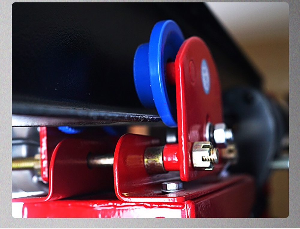 Tiến hành lắp đặt con rùa điện vào máy tời mini. Đo độ rộng của cánh dầm để xác định khoảng cách của 2 cụm bánh xe. Bạn có thể tháo bớt long đen 2 bên để thu nhỏ lại khoảng cách sao cho phù hợp với cánh dầm.