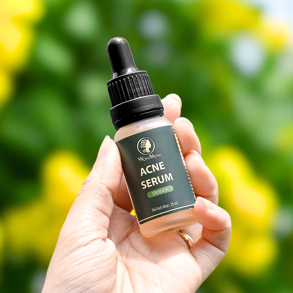 - Tác dụng từng thành phần: Serum mụn, tạm biệt thâm, tái tạo da cho mẹ bầu và sau sinh Wonmom 20ml: Chiết xuất rau má chứa nhiều saponin giúp các mô tế bào liên kết nhanh, kích thích tổng hợp collagen, hỗ trợ da mau lành, mờ thâm, liền sẹo hiệu quả. ZinC bum là một phytoactive tinh xảo được hình thành bởi các peptide của kẽm, quế, húng tây, cây cẩm quỳ và witch hazel (được chưng cất từ cây hạt phỉ). ZinC bum giúp ngăn ngừa mụn và hạn chế da đổ dầu nhờn. Vitamin B5 giúp phân giải lượng dầu thừa trên da nên ngăn mụn đồng thời giữ ẩm tốt cho da khiến da mịn màng, tràn đầy sức sống. Chiết xuất lộc đề chứa 100% acid tự nhiên có tên là Salicylic, kiềm dầu, sạch bã nhờn, giúp da sáng khỏe, mờ nếp nhăn. Kem nghệ tươi dưỡng da trắng mịn, sạch thâm nám Wonmom 50g: Với hàm lượng lớn curcumin trong tinh bột nghệ giúp mờ vết thâm mụn, tàn nhang, thu nhỏ chân lông đồng thời tái tạo làn da trắng hồng hiệu quả. Hợp chất lipid của cám gạo hiện diện lượng nhỏ tinh dầu Gamma Oryzanol có tác dụng gấp 4 lần Vitamin E trong việc ngăn ngừa lão hóa ở các mô tế bào, giúp dưỡng ẩm và căng bóng da. Vitamin E giúp làn da mịn màng, tươi trẻ, hạn chế nếp nhăn. Hạnh nhân chứa nhiều axit béo có lợi cùng vitamin A, E giúp da trở nên mịn màng, trắng hồng và ngăn ngừa mụn hiệu quả. Jojoba chứa nhiều Linoleic acid có tác dụng ngăn ngừa mụn, hỗ trợ làm mờ vết thâm, khiến da mặt căng bóng, hồng hào.