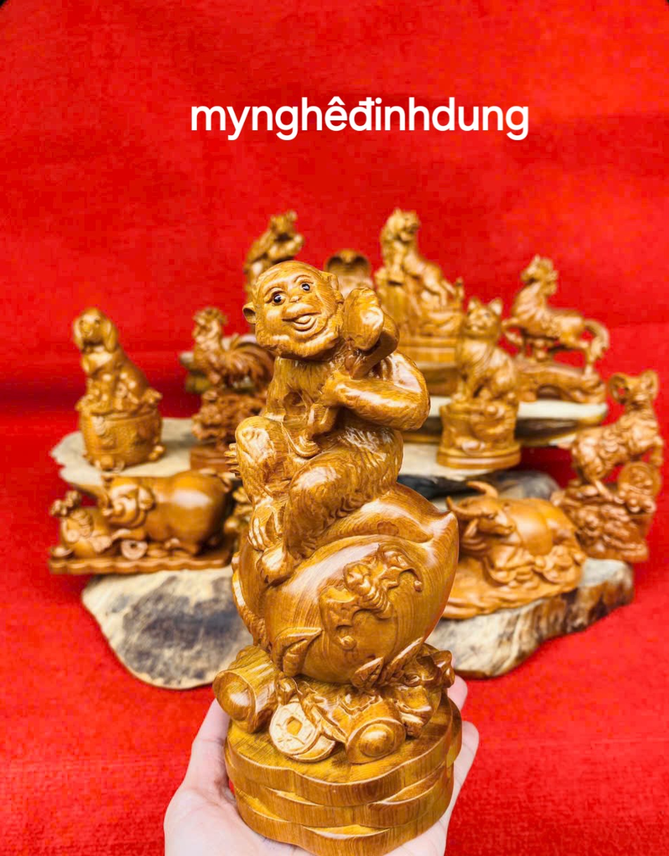 Mua tại Tiktok_ Bộ tượng 12 còn giáp phong thủy được làm bằng chất liệu gỗ bách xanh liền khối tự nhiên 100%