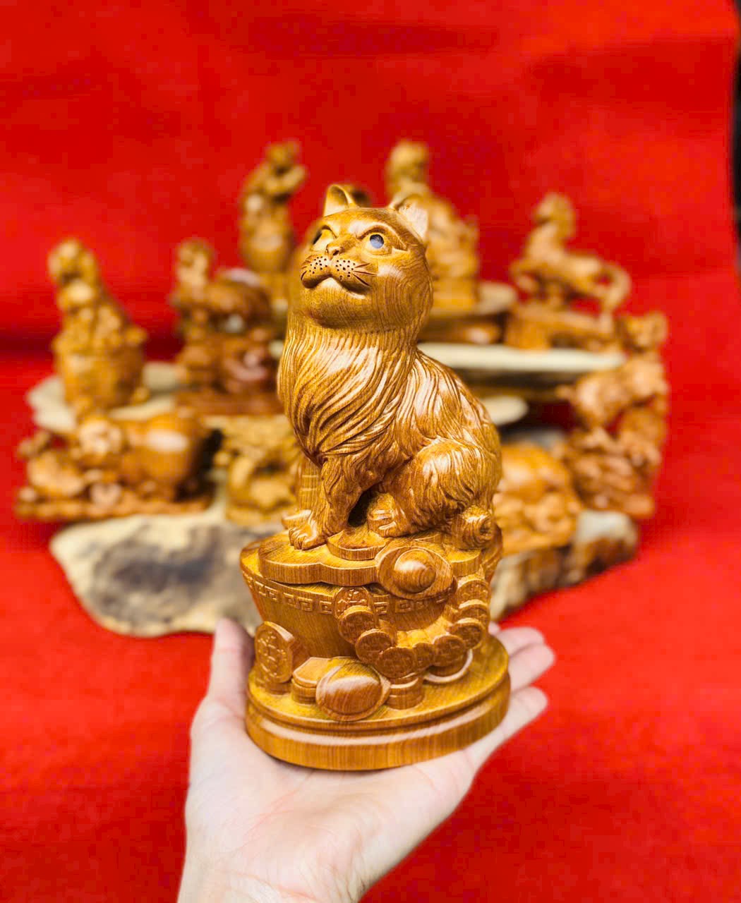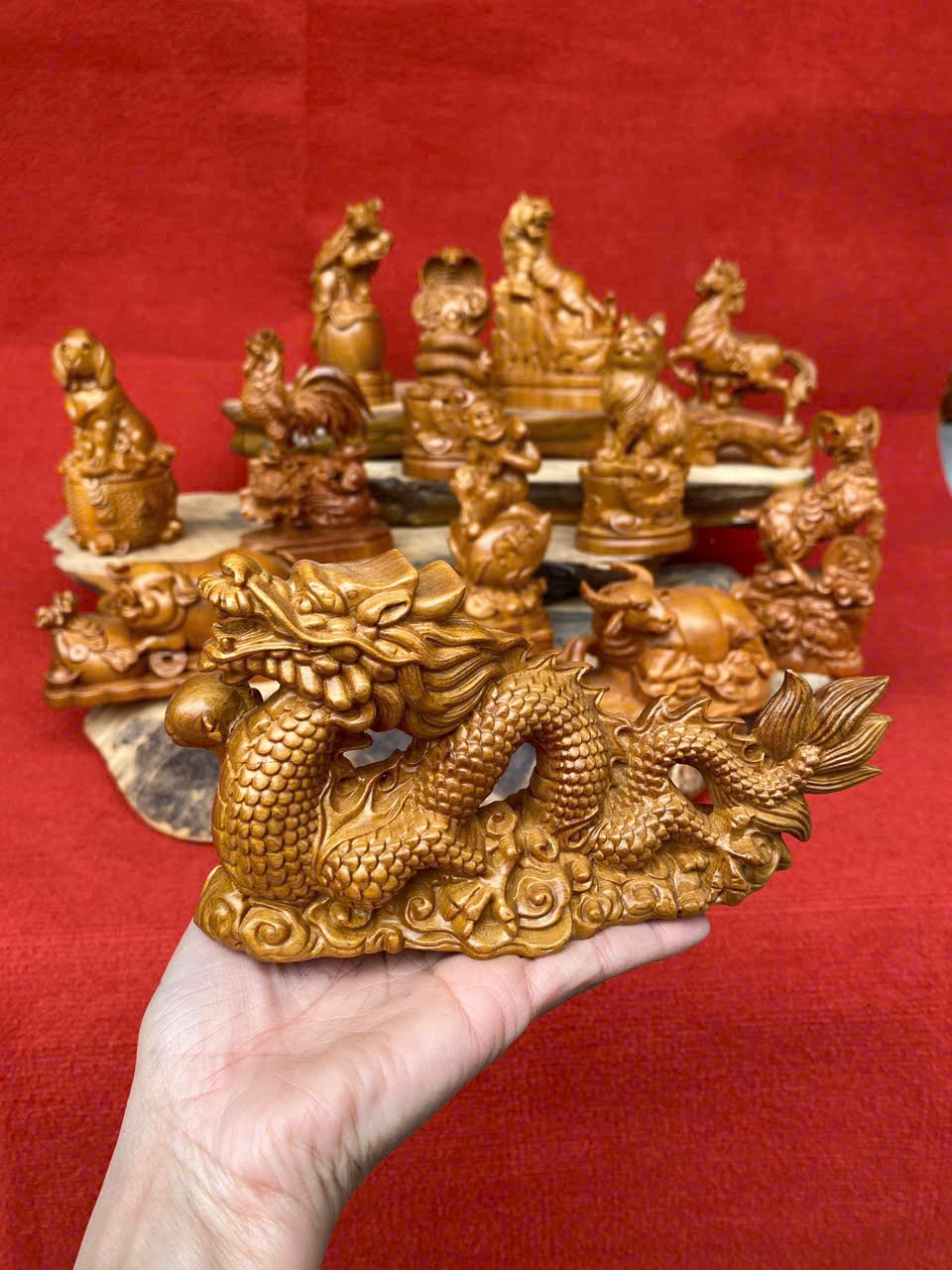 ✨Bộ tượng 12 còn giáp phong thủy bằng gỗ bách xanh thơm nức cao 20cm
