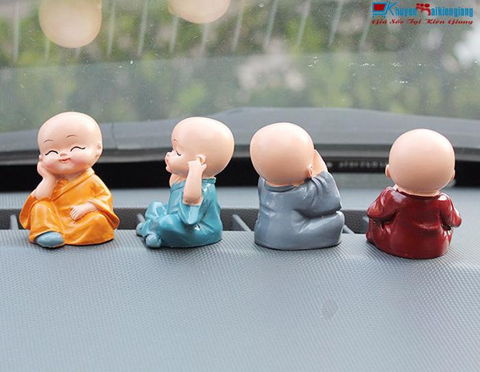 Set sư thầy gõ mõ tụng kinh và 4 chú tiểu trang trí xế yêu có kèm thảm | trang trí ô tô xe hơi