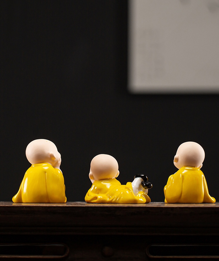 Bộ tượng gốm sa tử chú tiểu với hình ảnh thân thiện; dễ thương; dễ gần; vui vẻ tượng trưng cho sự thanh thản; thánh thiện và an lạc. Không dính bụi trần trong cõi