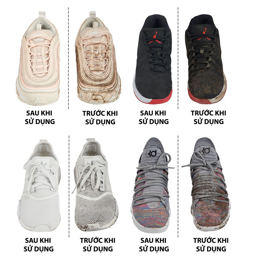 - Vệ sinh giày không cần dùng nước , hiệu quả nhanh