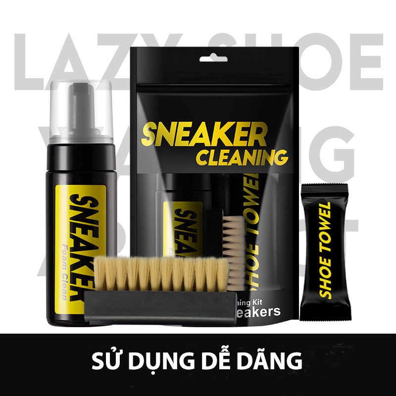 - Bộ sản gồm : 1 bình xịt tạo bọt dung tích 150ml, 1 khăn mềm, 1 bàn chải mềm, 1 túi khăn lau sneaker 12 tờ.