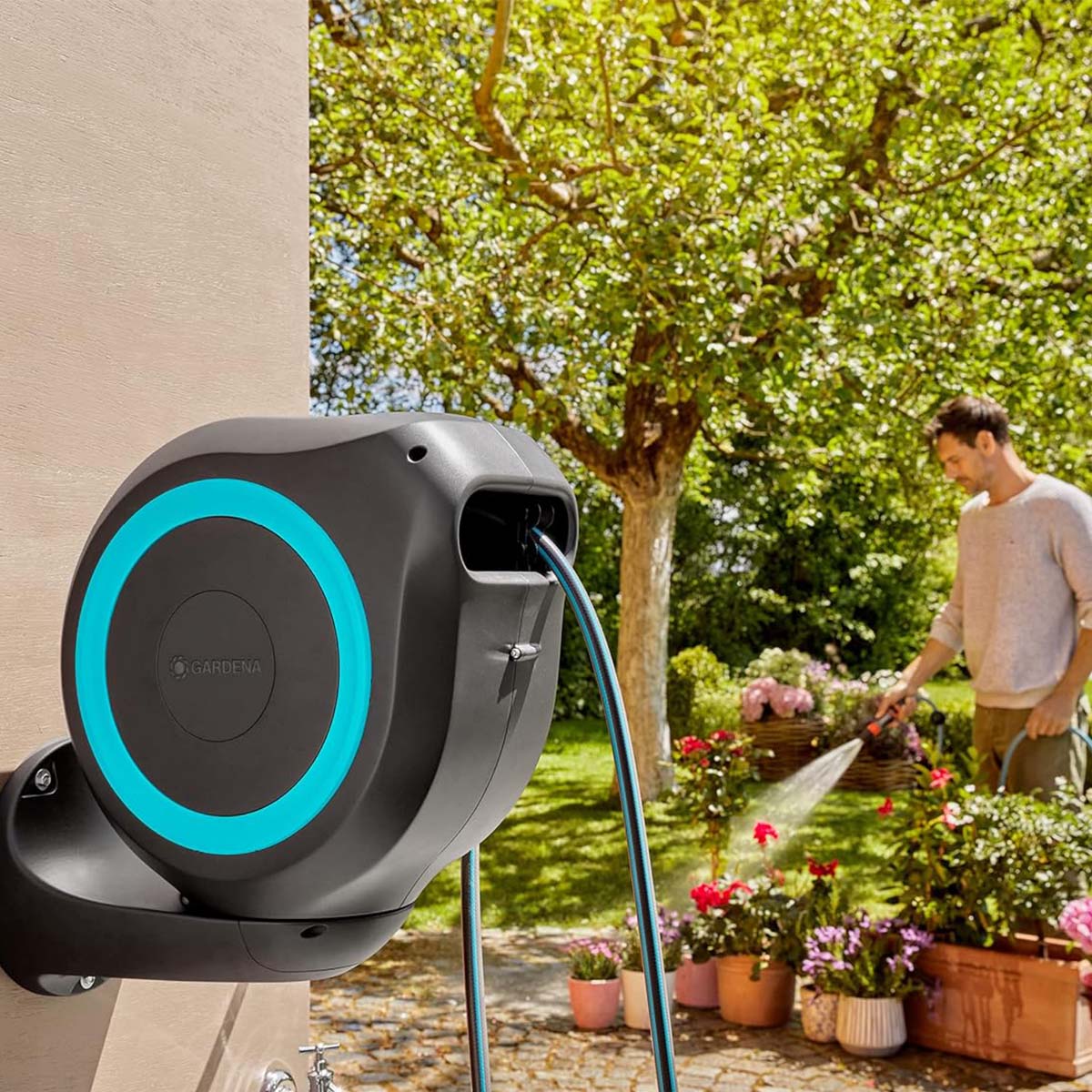 Bộ Vòi Tưới Gắn Tường Cuộn Tự Động 20M Gardena 18610-20 – Giải Pháp Tưới Cây Thông Minh, Gọn Gàng