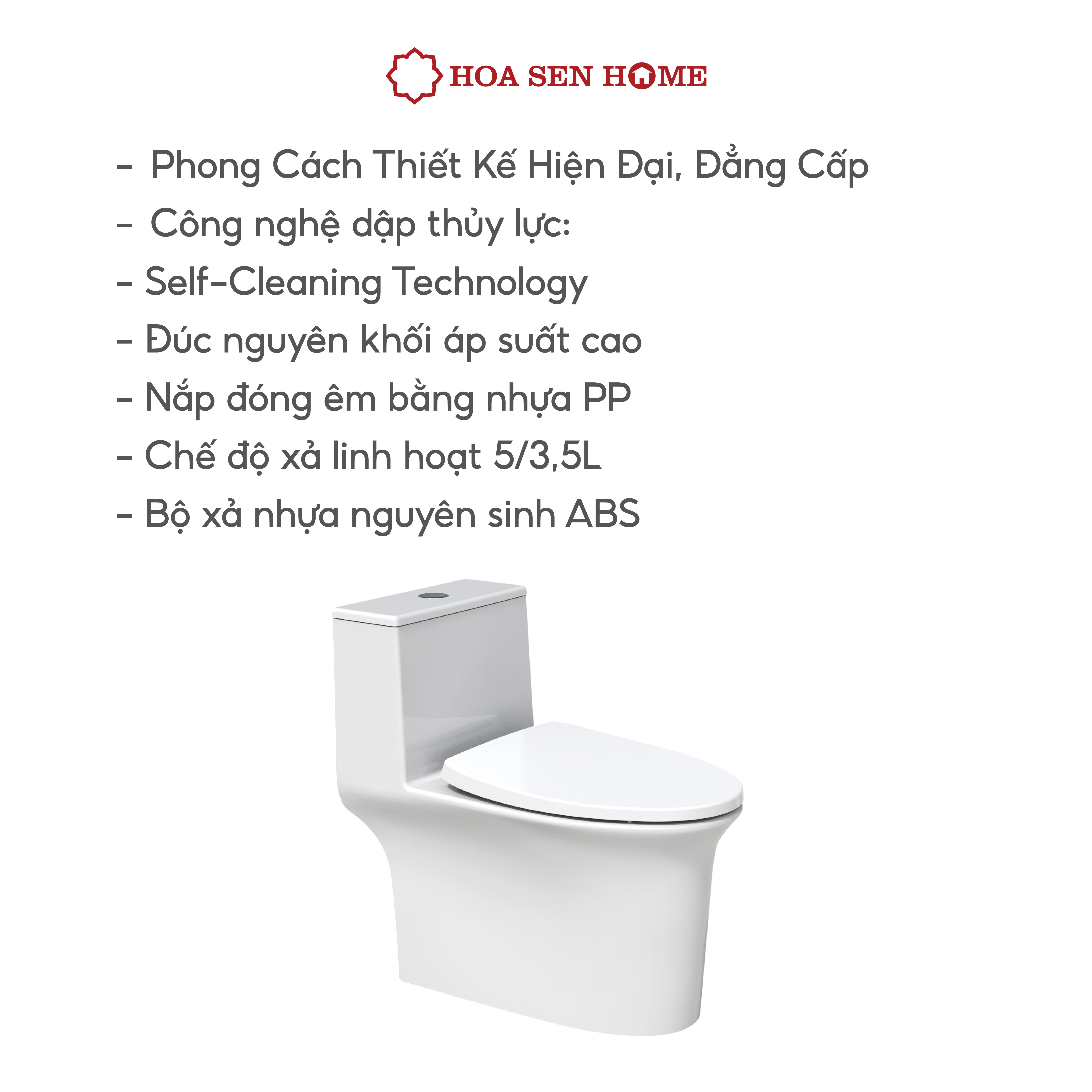 Sản phẩm được sản xuất bằng công nghệ đúc cao áp thủy lực, mang lại độ đồng nhất và độ bền vượt trội. Kết hợp với chế độ xả tiết kiệm nước, sản phẩm không