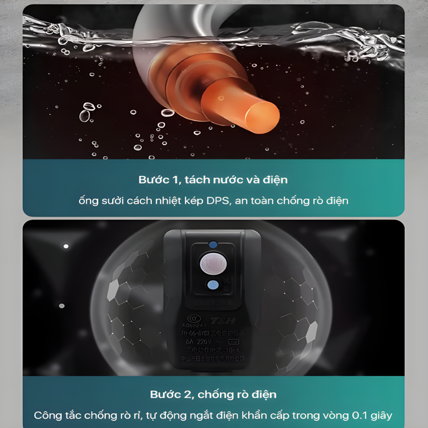 - Áp dụng công nghệ làm nóng tách nước và điện DSP, tăng cường lớp cách nhiệt để bọc ống sưởi, cách ly đường dẫn nước và mạch điện và đảm bảo không bị rò rỉ
