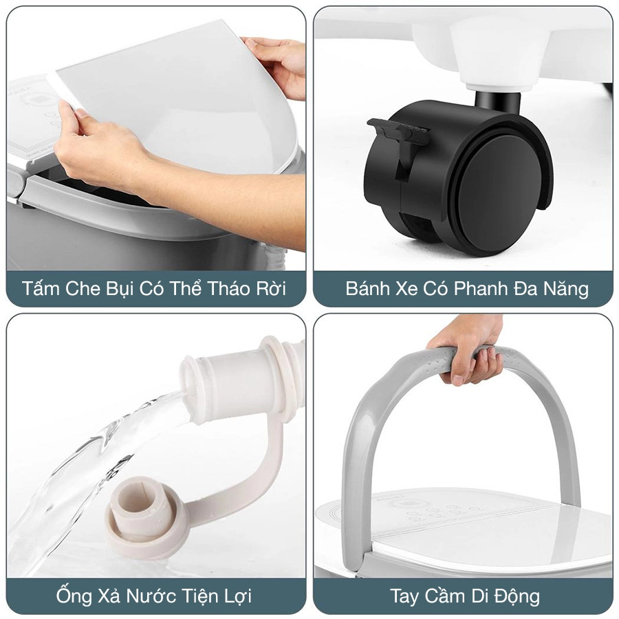 Tiện Ích Xông Hơi: Nắp đậy của bồn có thể hỗ trợ việc xông hơi bàn chân hiệu quả, giúp làm nóng nước nhanh chóng và duy trì độ ẩm, cùng việc dễ dàng tháo rời để vệ sinh.