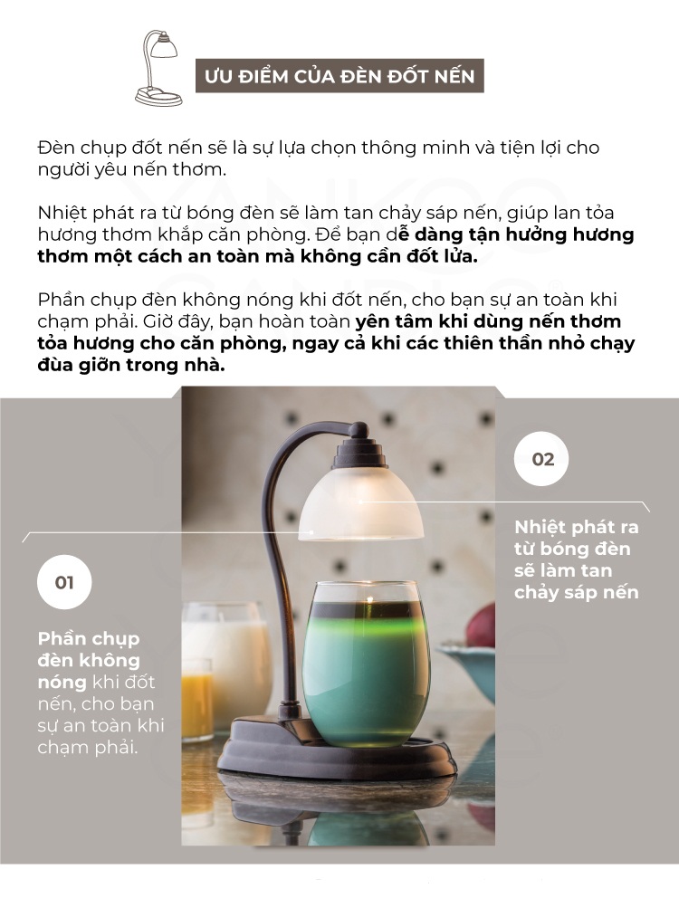 Đèn đốt nến sử dụng nhiệt tỏa ra từ bóng đèn để làm tan chảy lớp sáp nến, tạo ra hương thơm lan tỏa khắp ngôi nhà.