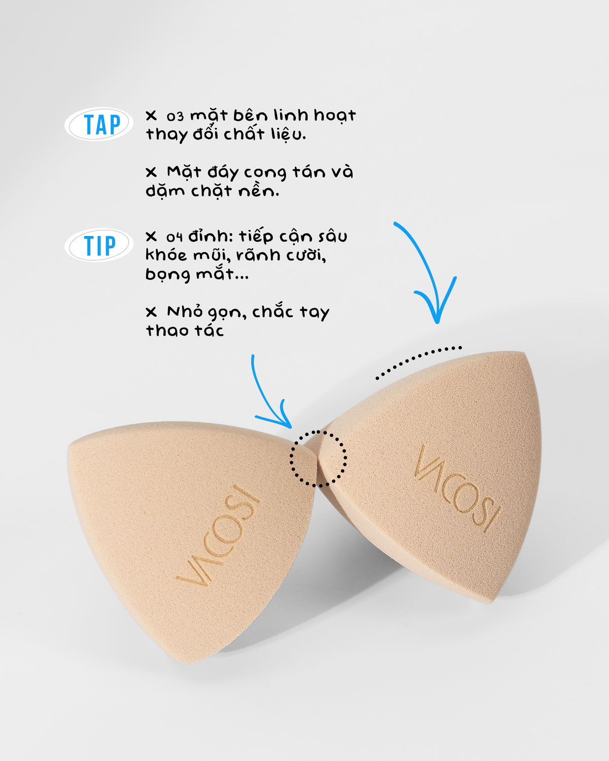 VACOSI TAP AND TOUCH MAKEUP SET, 4 pcs SET 4 BÔNG TRANG ĐIỂM VACOSI - 4 size đa công dụng Set bông trang điểm VACOSI Tap & Touch với nhiều hình dáng và đa dạng