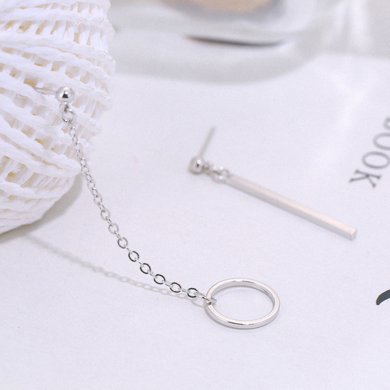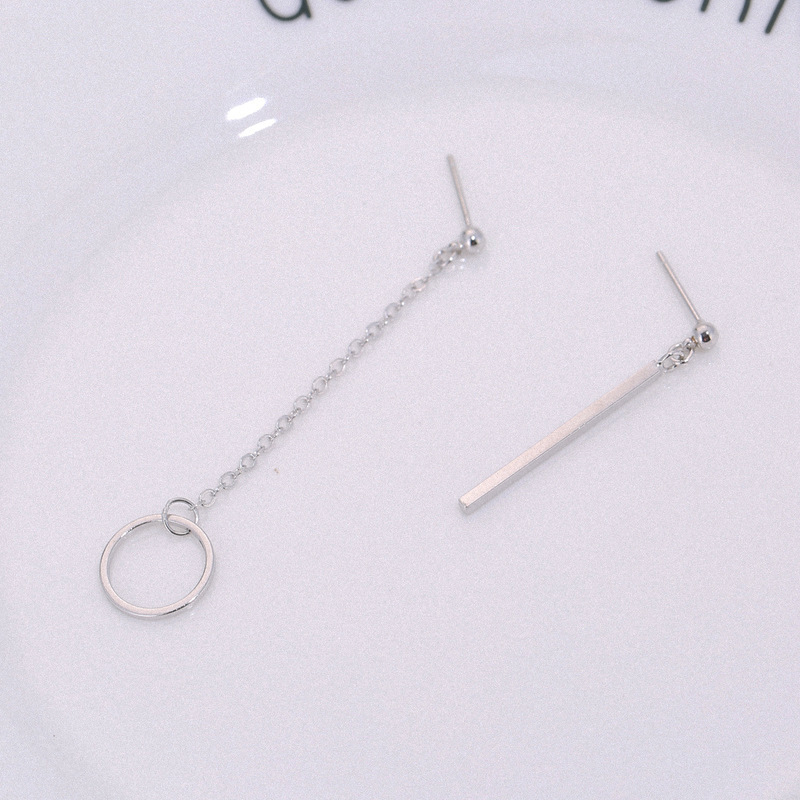 ✨Bông tai bất đối xứng thanh thẳng và vòng tròn thả xích 1 đôi