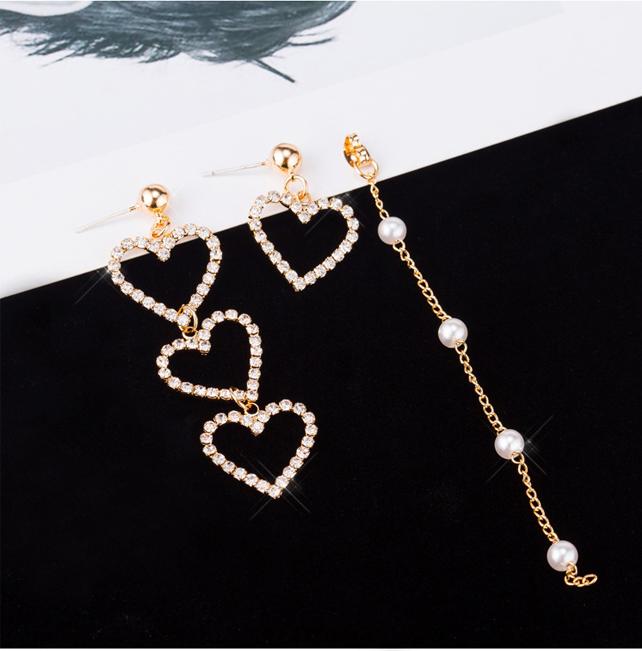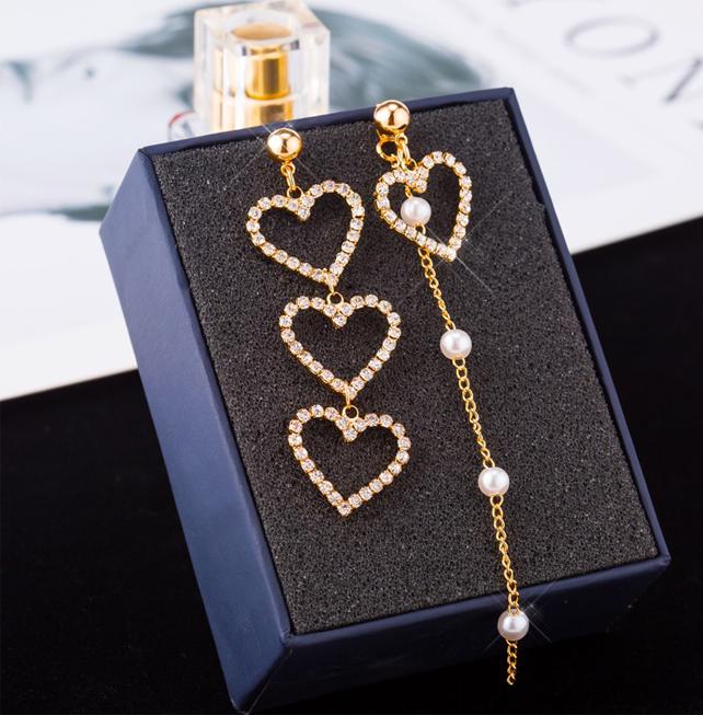 ✨Bông tai trái tim rỗng đính đá thả hạt ngọc trai bất đối xứng