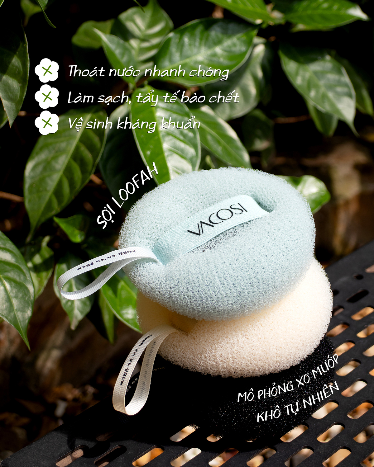 Chất liệu sợi Syntheltic Loofah- mô phỏng sợi sơ mướp tự nhiên, tạo bọt nhanh chóng và an toàn cho mọi loại da, kể cả da nhạy cảm.