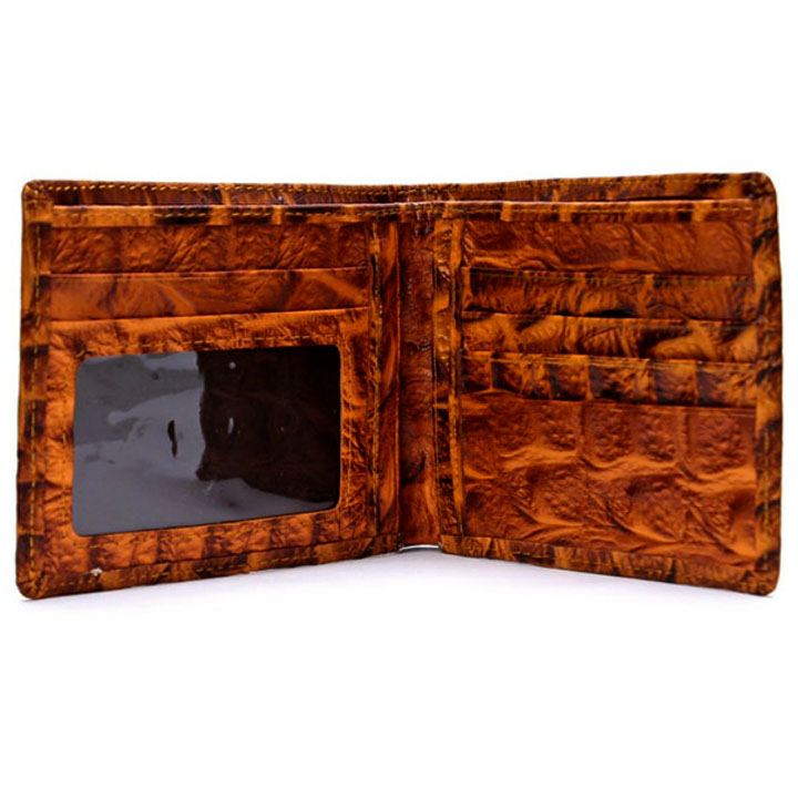 - Ví nam được làm bằng chất liệu da cá sấu cao cấp tạo kiểu dáng lạ mắt, sang trọng. - Thiết kế nhỏ gọn, thời trang, dạng ví nam xếp đôi, có nhiều ngăn