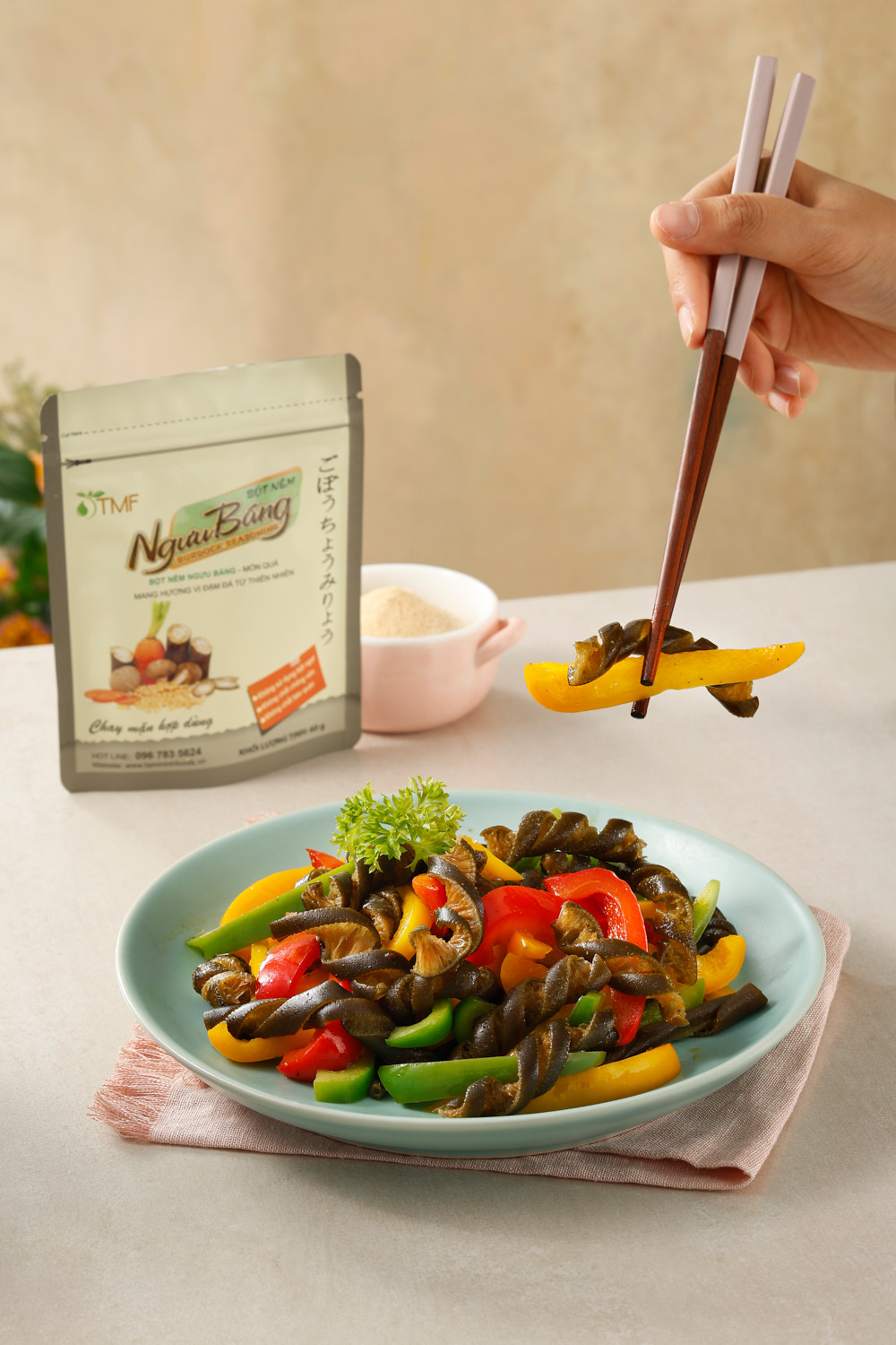 Bột nêm Ngưu Báng – Món quà mang hương vị đậm đà từ thiên nhiên. Thành phần: muối, ngưu báng 30%, nấm đông cô, cà rốt, protein đậu nành, chiết xuất lúa mạch, đường vàng.