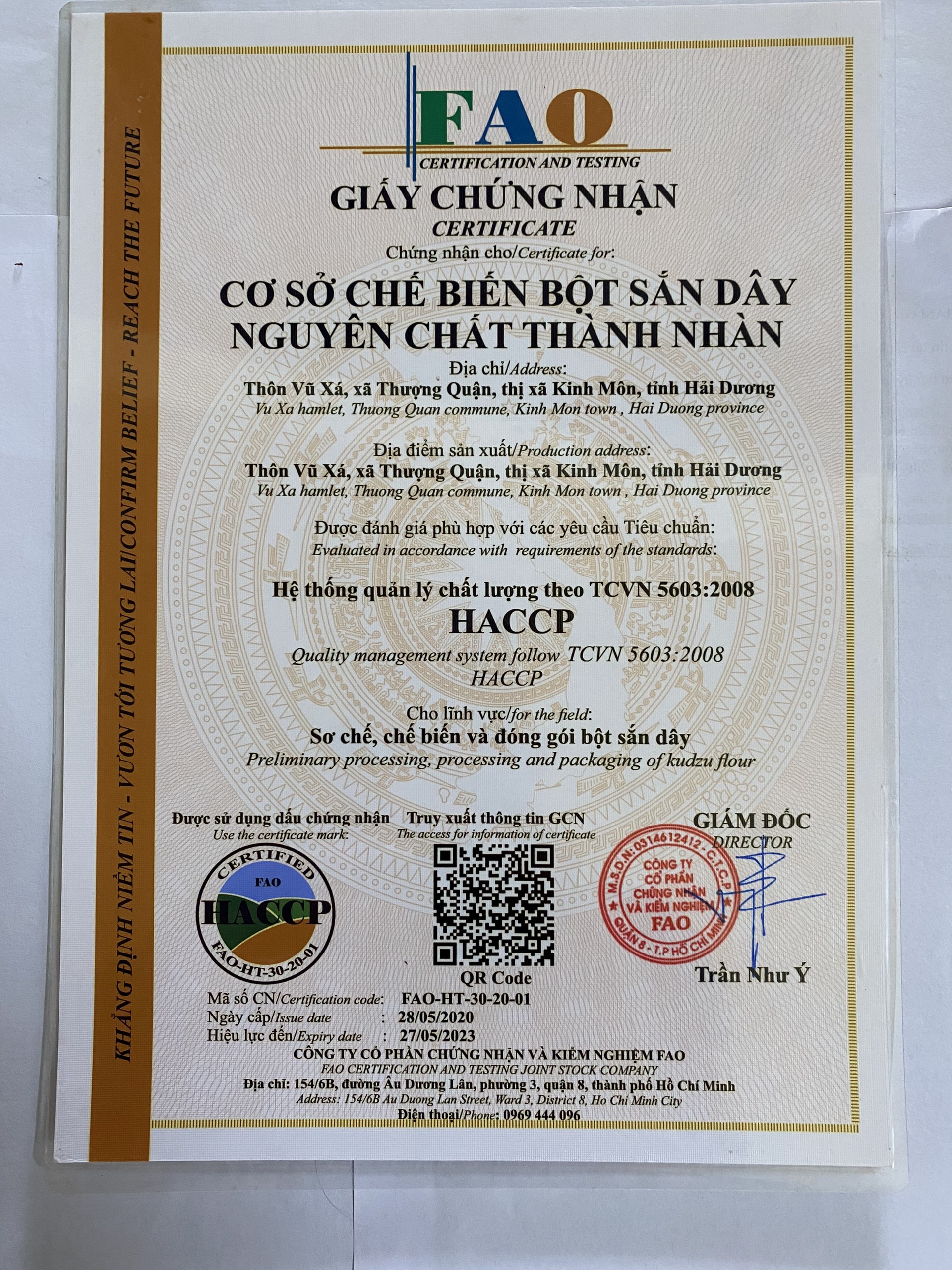 Mua tại TiktokBột sắn dây nguyên chất Thành Nhàn được sản xuất 100% từ nguyên liệu tự nhiên là sắn dây ta được trồng tại xã Thượng Quận – Kinh Môn – Hải Dương. Với nguồn nguyên liệu sạch và quy trình chế biến tuân thủ các quy định an toàn thực phẩm khắt khe nhất cho ra sản phẩm bột sắn dây chất lượng nhất đảm bảo yêu cầu về an toàn thực phẩm và được cấp giấy chứng nhận an toàn thực phẩm, sản phẩm ocop 3 sao cấp tỉnh, chứng nhận chất lượng HACCP Công Dụng của bột sắn dây nguyên chất Thành Nhàn: Thanh nhiệt, giải độc, chống táo bón Hỗ trợ tiêu hóa, cải thiện cực tốt chứng trào ngược dạ dày Làm đẹp da, làm mờ vết tàn nhang. Giải cảm, chống say nắng. Cải thiện kích thước vòng 1. Tốt cho phụ nữ mang thai.