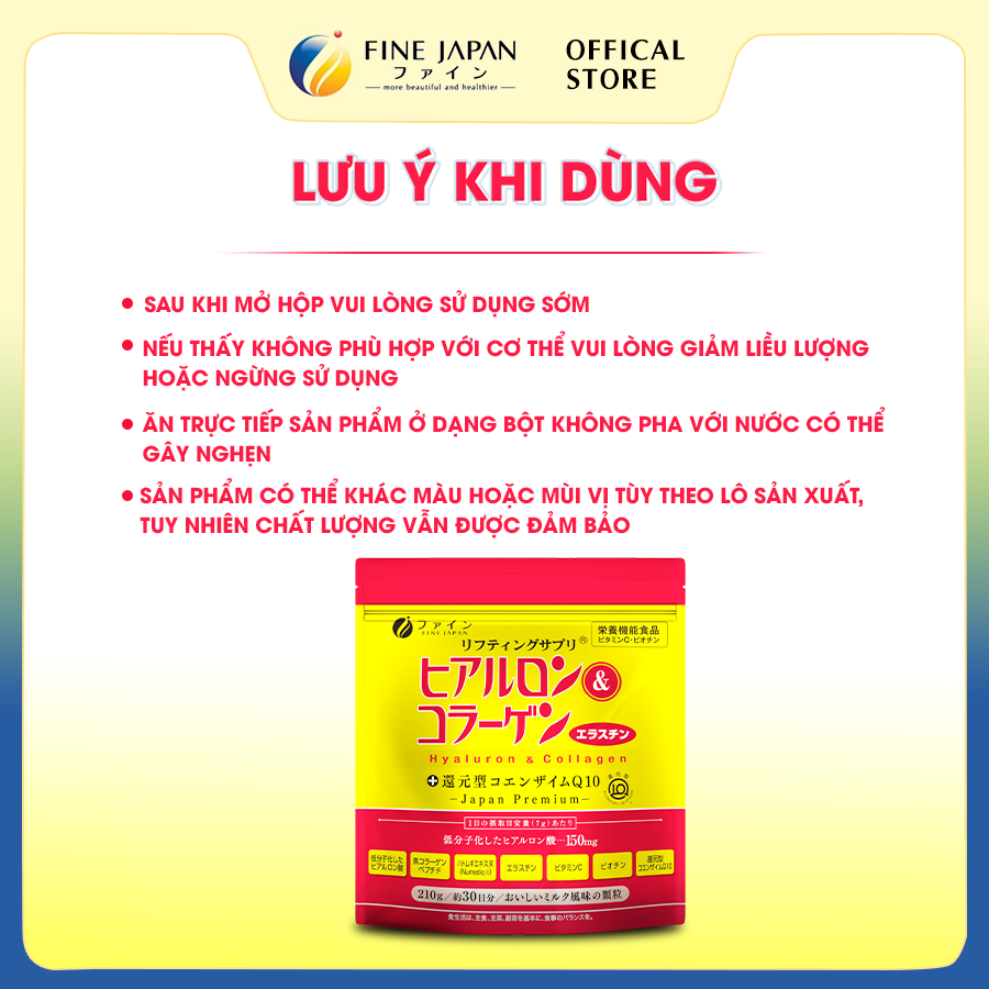 Mua tại Tiktok►Bột uống Hyaluron & Collagen FINE JAPAN hạn chế lão hóa da gói 210g ► KHỐI LƯỢNG TỊNH: 210g ► THƯƠNG HIỆU: FINE JAPAN ► XUẤT XỨ: Nhật Bản ► ĐỐI TƯỢNG SỬ DỤNG: