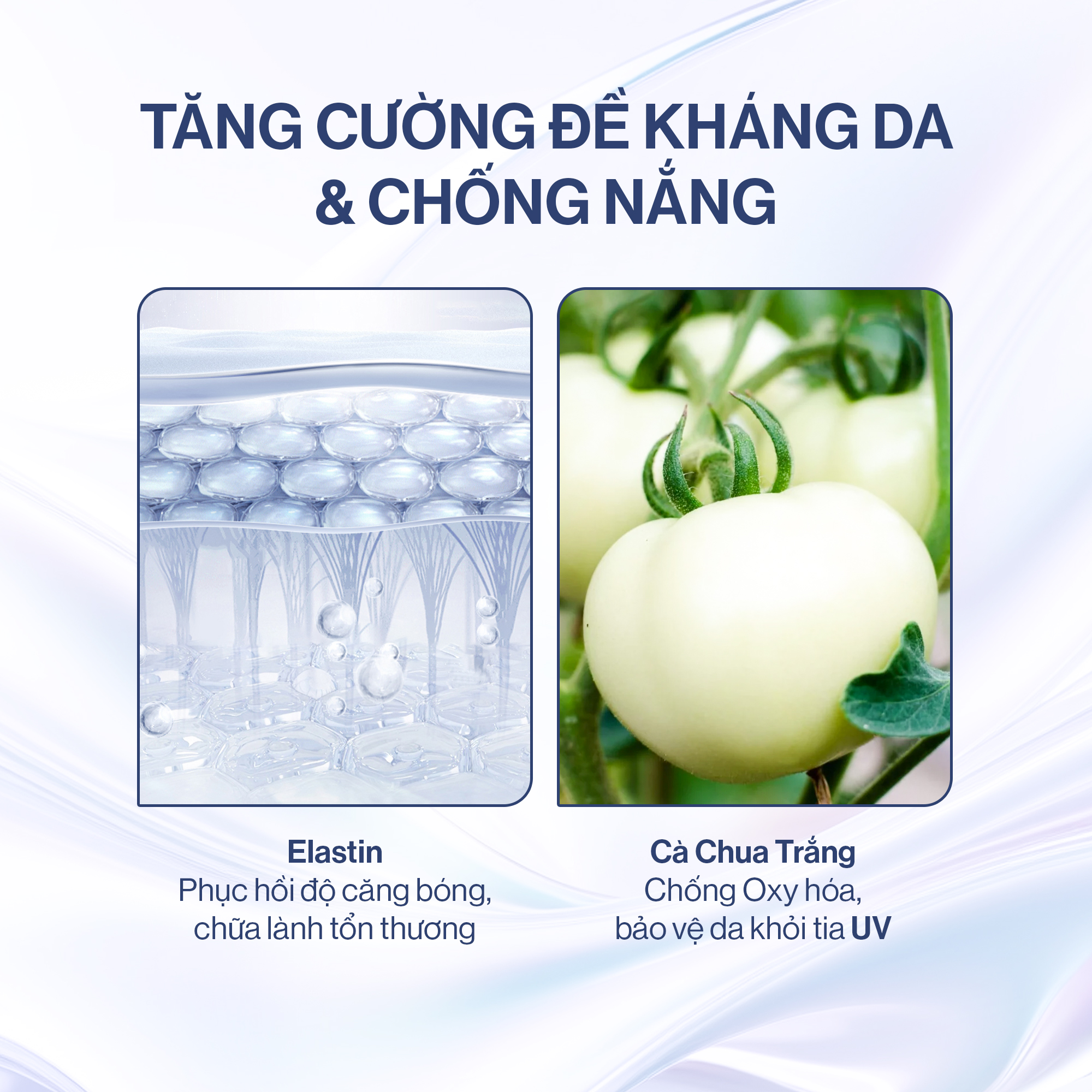 • 10mg Elastin: Duy trì độ đàn hồi & cấu trúc mô cho da căng bóng khỏe