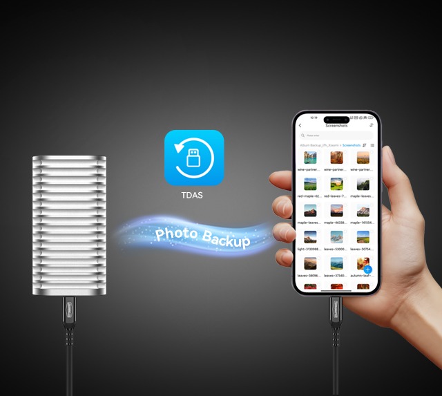 Ứng dụng TDAS miễn phí độc quyền của TerraMaster cho phép sao lưu và quản lý dễ dàng ảnh, video và dữ liệu khác trên thiết bị di động thông qua kết nối USB. Hoàn toàn tương thích với iOS 15.6 trở lên và Android 11 trở lên.