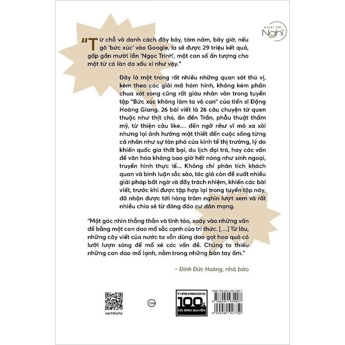 Nhận xét dành cho cuốn sách Bức Xúc Không Làm Ta Vô Can - Tái Bản Có Bổ Sung