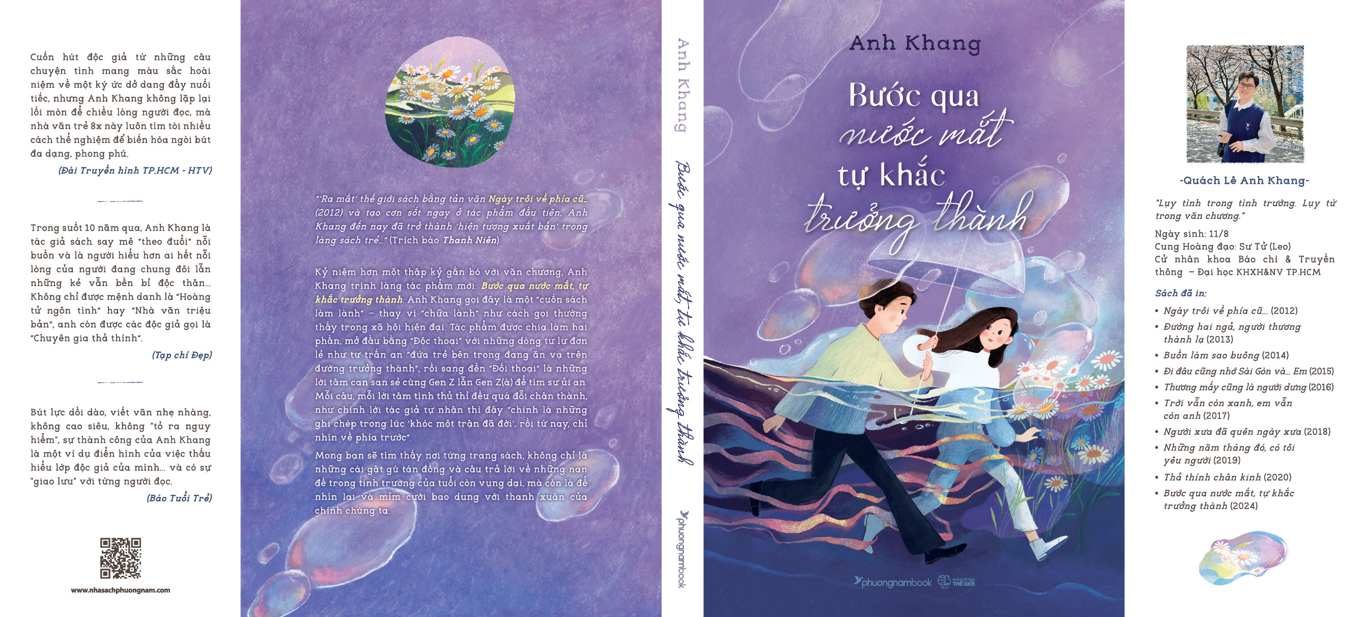 Kỷ niệm hơn một thập kỷ gắn bó với văn chương, Anh Khang trình làng tác phẩm mới: Bước qua nước mắt, tự khắc trưởng thành. Anh Khang gọi đây là một “cuốn sách làm lành” – thay vì “chữa lành” như cách gọi thường thấy trong xã hội hiện đại. Tác phẩm được chia làm hai phần, mở đầu bằng “Độc thoại” với những dòng tư lự đơn lẻ như tự trấn an “đứa trẻ bên trong đang ăn vạ trên đường trưởng thành”, rồi sang đến “Đối thoại” là những lời tâm can san sẻ cùng Gen Z lẫn Gen Z(à) để tìm sự ủi an. Mỗi câu, mỗi lời tâm tình thủ thỉ đều quá đỗi chân thành, như chính lời tác giả tự nhận thì đây “chính là những ghi chép trong lúc ‘khóc một trận đã đời’, rồi từ nay, chỉ nhìn về phía trước”.