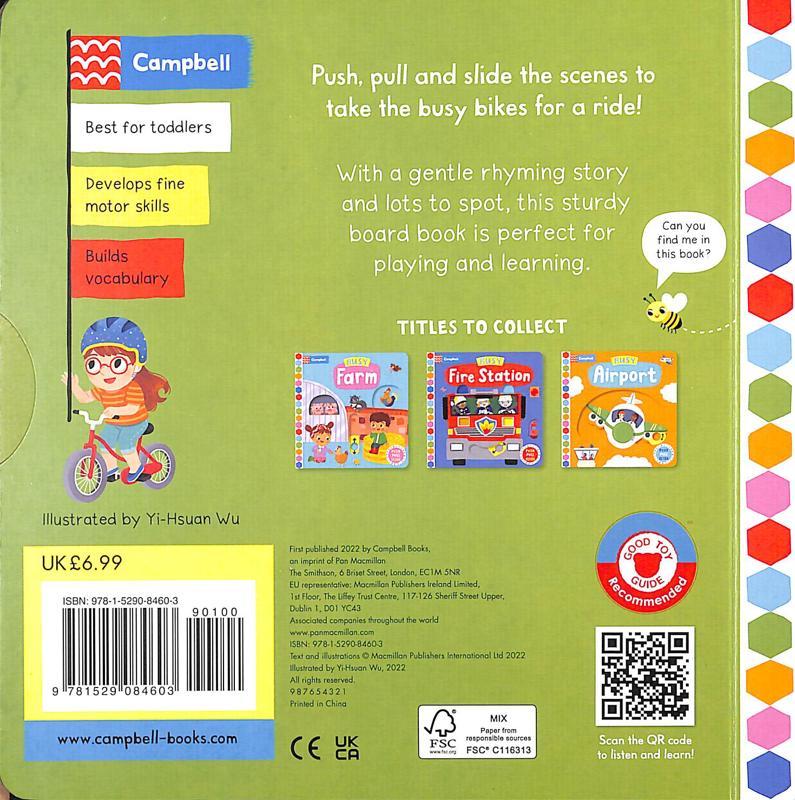 Children will love playing with this bright and colourful board book with a gentle rhyming story and wonderful illustrations by Yi-Hsuan Wu, which is part of the popular Busy Book series. This book is perfect for young children who are learning exciting new skills. Busy Bikes has been endorsed and recommended by Dr Amanda Gummer's Good Toy Guide.