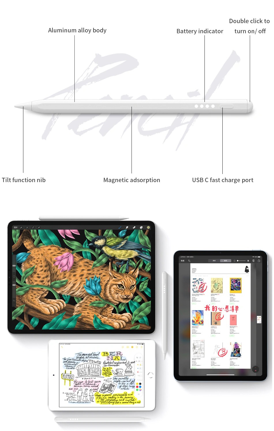 1.Pen body material: aluminum alloy 2.Pen head material: POM 3.Type-C cable length: 0.5 meters 4.Charging time: 1 hour