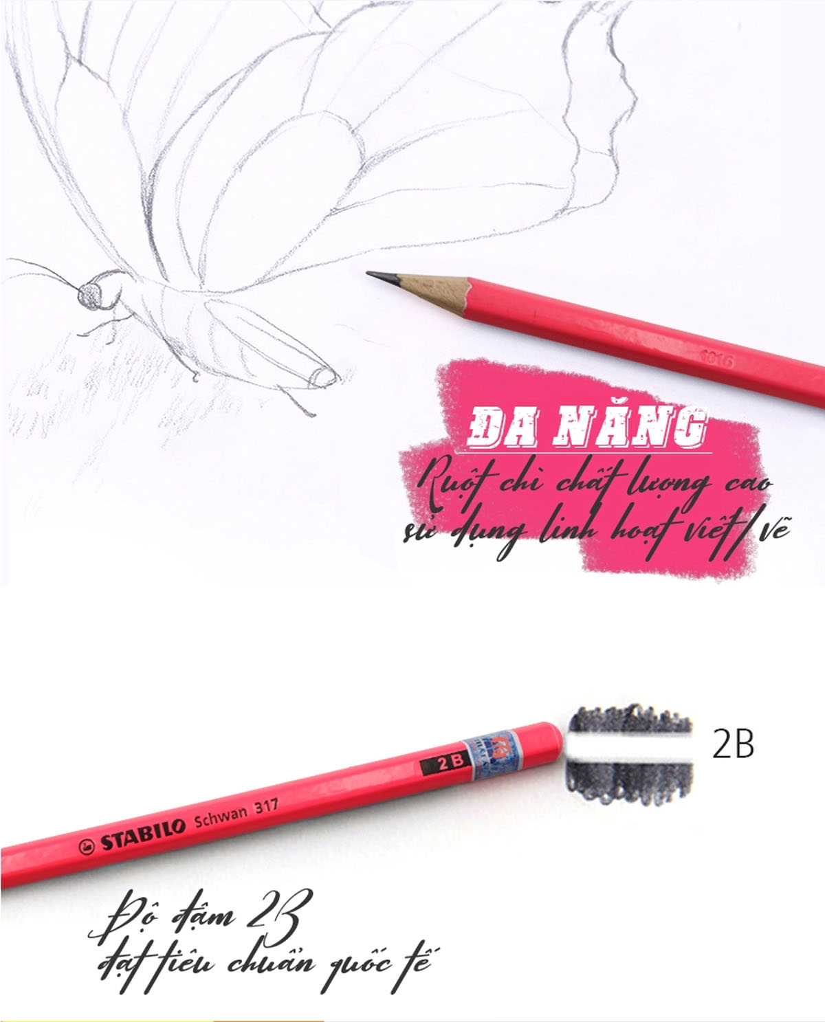 Ngòi bút có độ đậm 2B, chuyên dùng cho vẽ phác thảo, viết, thi trắc nghiệm