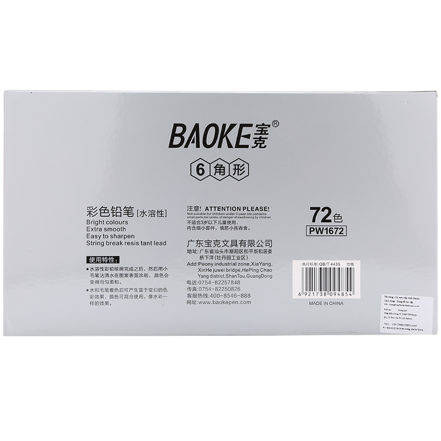 Thương Hiệu : BAOKE MÃ sản phẩm : PW1612 Hộp gộm : 12/24/36/48/72 Màu ất liệu cao cấp, bề mặt mịn và tinh tế. 2. Không độc hại, thân thiện với môi trường, không có