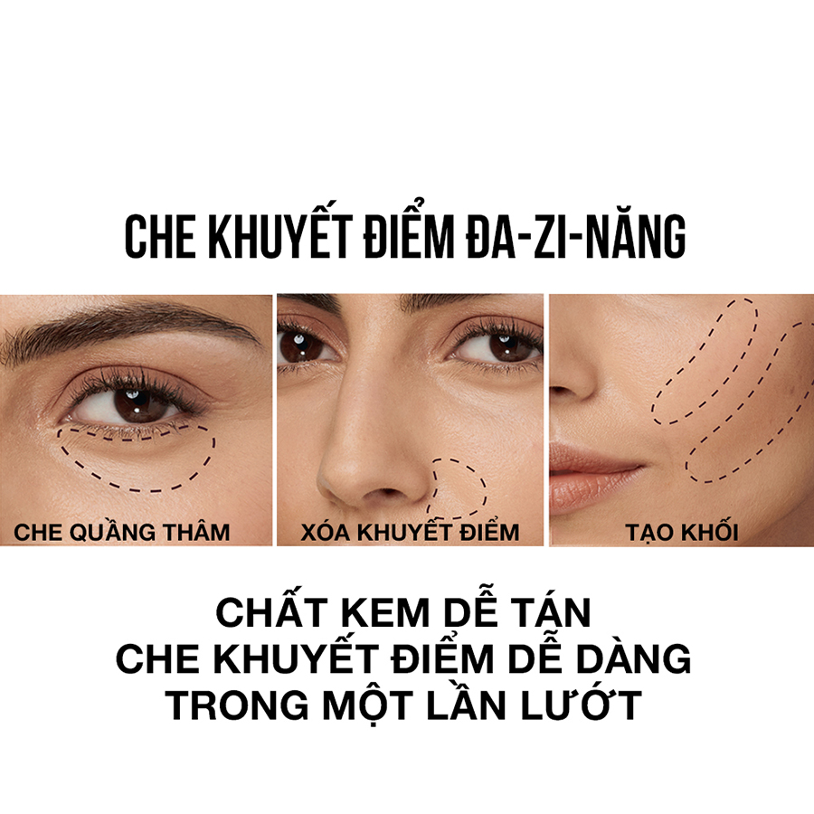 - Ưu điểm nổi bật: • Độ che phủ: Trung bình- cao. • Che quầng thâm mắt và che phủ hoàn hảo các khuyết điểm như thâm, mụn, tàn nhang, sẹo nhỏ, • Có thể sử dụng để nhấn sáng & tạo khối. Thiết kế đầu cushion giúp dễ dàng tán đều kem. • Bút che khuyết điểm nhỏ gọn, tiện lợi để mang theo bên mình và sử dụng như kem nền.