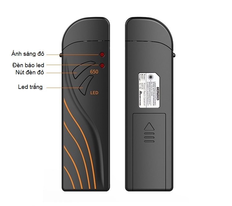 Chiều dài tối đa có thể test : 15km Đầu ra bước sóng : 650nm Công suất phát quang : 15mW Hỗ trợ đầu nối tiêu chuẩn 2.5mm như FC,SC,ST Chế độ test : sáng liên lục,nhấp nháy Đèn pin trợ sáng Chất liệu vỏ : Nhựa sử dụng pin sạc