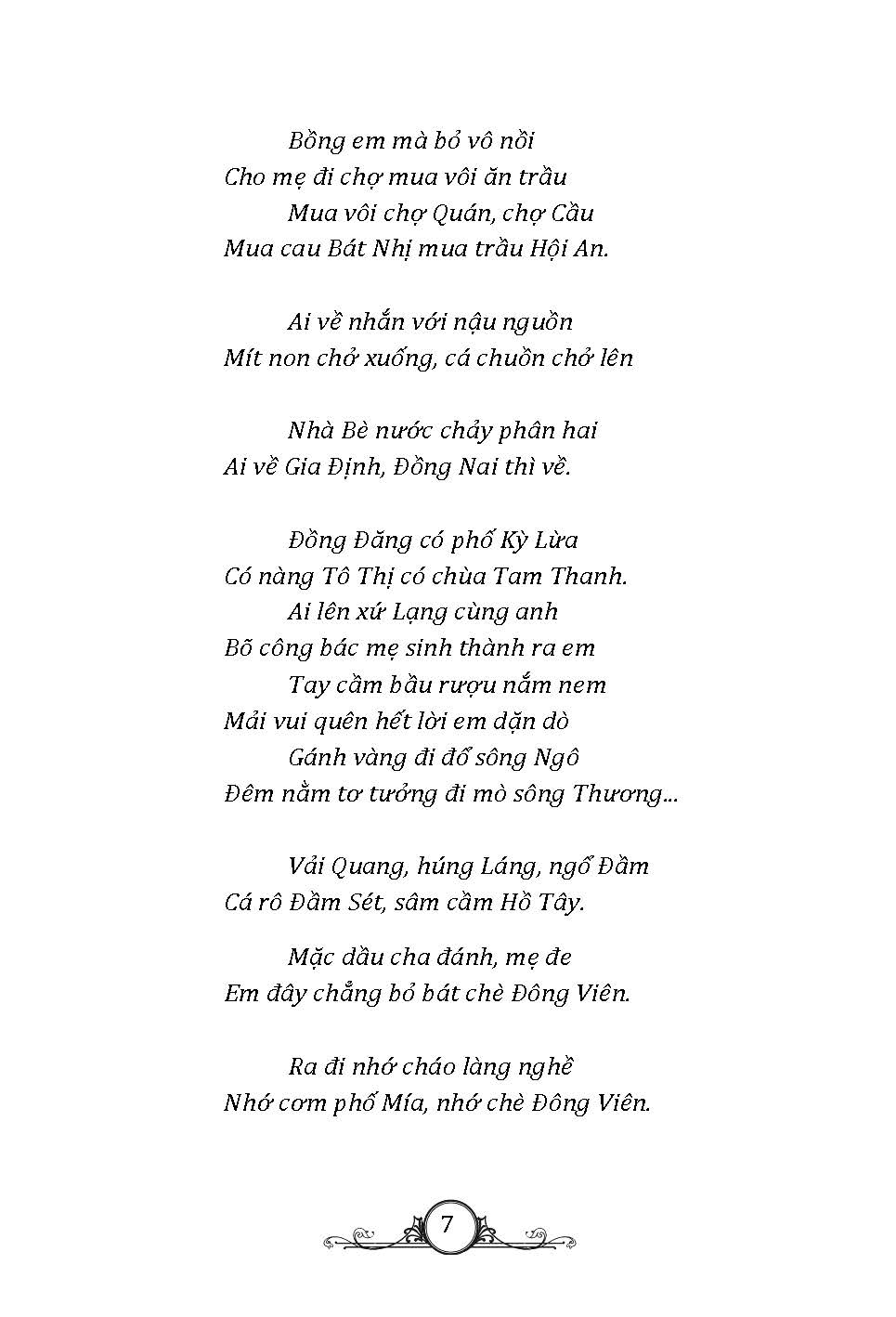 Tuyển tập thơ ca dân gian Việt Nam với những câu hát phổ biến dễ nhớ, dễ thuộc, chứa đựng những giá trị và ý nghĩa sâu sắc về tình yêu quê hương, đất nước,