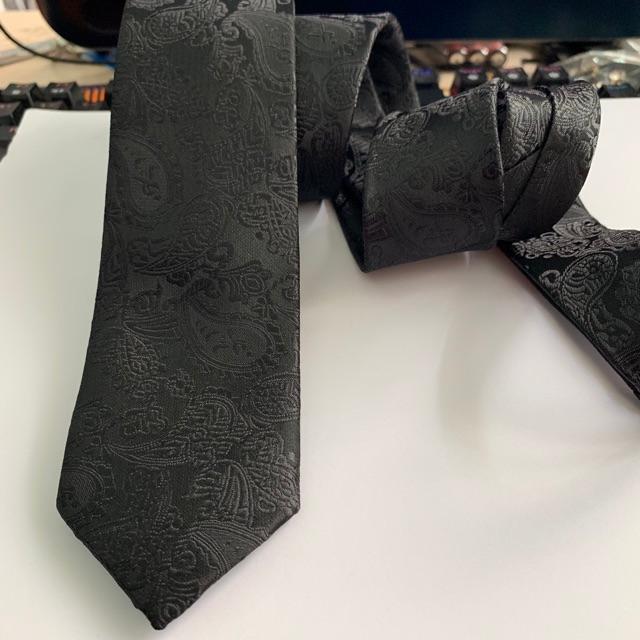 ✨Cà vạt nam bản 6cm chất liệu gấm cao cấp Cavat nam đen hoa văn
