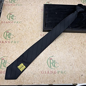 Cà vạt nam chú rể màu đen song Hỷ vàng vuông mẫu 6cm dây kéo thắt sẵn màu đen kẻ nổi