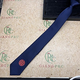 ✨Cà vạt nam chú rể màu xanh đen song Hỷ đỏ tròn mẫu 6cm dây kéo thắt sẵn màu xanh đen kẻ tăm