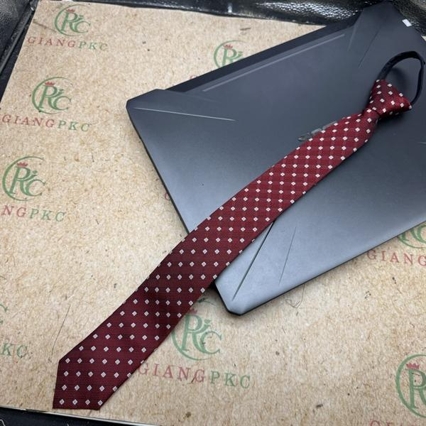 ✨Cà vạt nam mẫu thắt sẵn dây kéo bản nhỏ 6cm màu đỏ đô chấm ô vuông