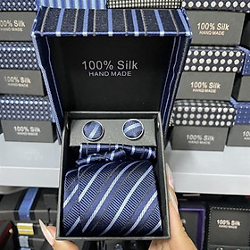Cà vạt nam màu xanh đen kẻ kèm hộp bản nhỏ 6cm dành cho nam thanh niên set đầy đủ mẫu t11-2023 Giangpkc 011-86