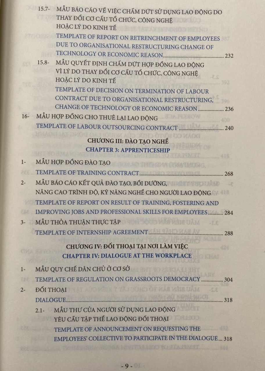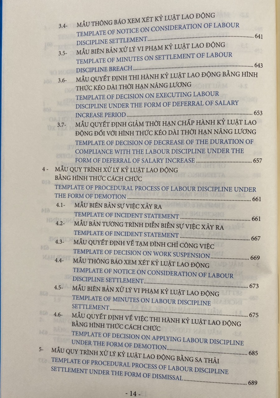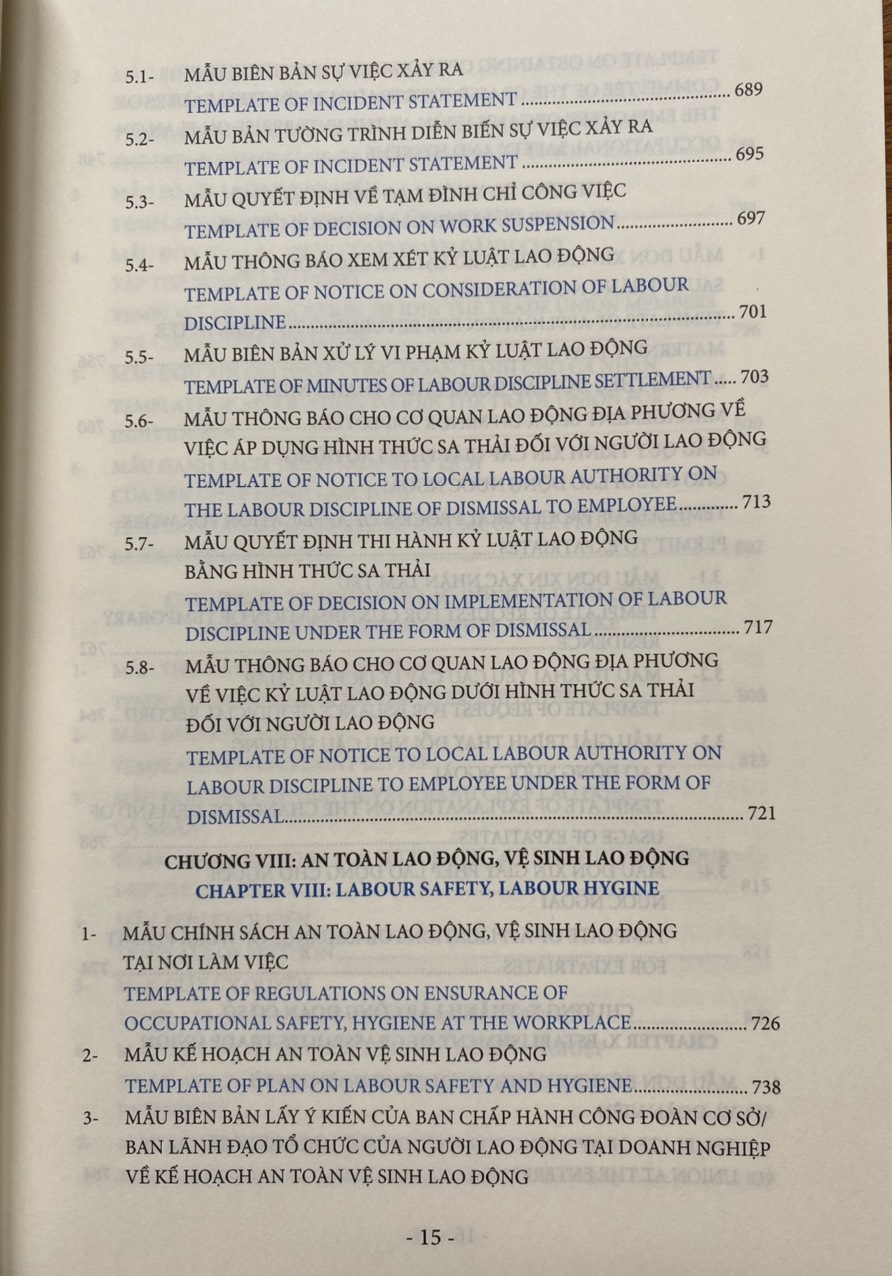 Các biểu mẫu nhân sự về pháp luật lao động được trình bày dưới dạng song ngữ Việt Anh giúp độc giả thuận tiện tham chiếu và áp dụng phù hợp.