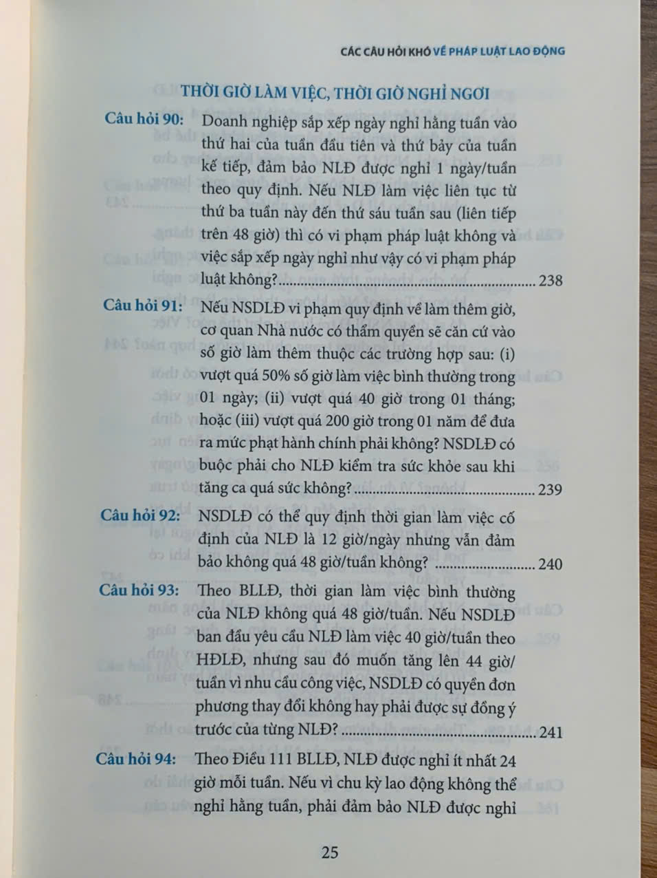 Quyển sách này được biên soạn dựa trên những quy định mới nhất của pháp luật lao động Việt Nam tại thời điểm xuất bản và thực tiễn áp dụng tại doanh nghiệp, nhằm giúp doanh nghiệp không chỉ tuân thủ pháp luật mà còn đáp ứng các yêu cầu tuân thủ khắt khe của các cơ quan quản lý lao động. Sách này được xây dựng dựa trên nguyên tắc “Quy định pháp luật + Lý luận + Thực tiễn + Tình hình thực tế tại doanh nghiệp”. Tuy nhiên, khi nhìn từ những góc độ khác như cơ quan quản lý Nhà nước, các tổ chức bảo vệ người lao động, hay từ góc độ nghiên cứu học thuật, cách tiếp cận các câu trả lời có thể khác đi.