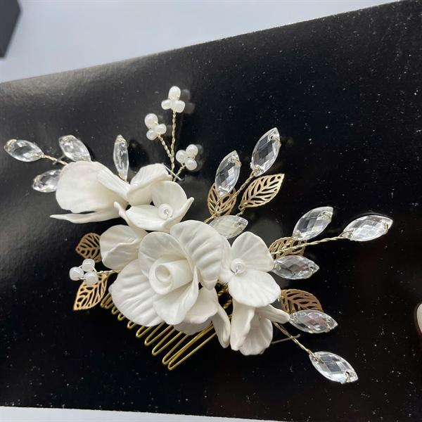 ✨Cài tóc cô dâu hoa đất sét trắng có sẵn xược cài mã 005 - 14cm