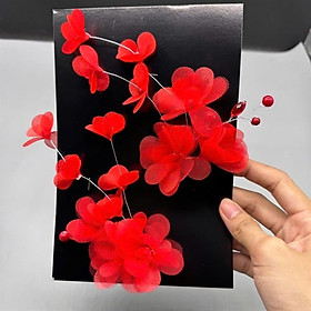 Trâm cài tóc cô dâu thiết kế ngọc trai và hoa 5 canh mềm mại, nữ tính. Tôn lên vẻ đẹp cho mái tóc xinh. Thích hợp trang điểm, make up cô dâu, trang điểm