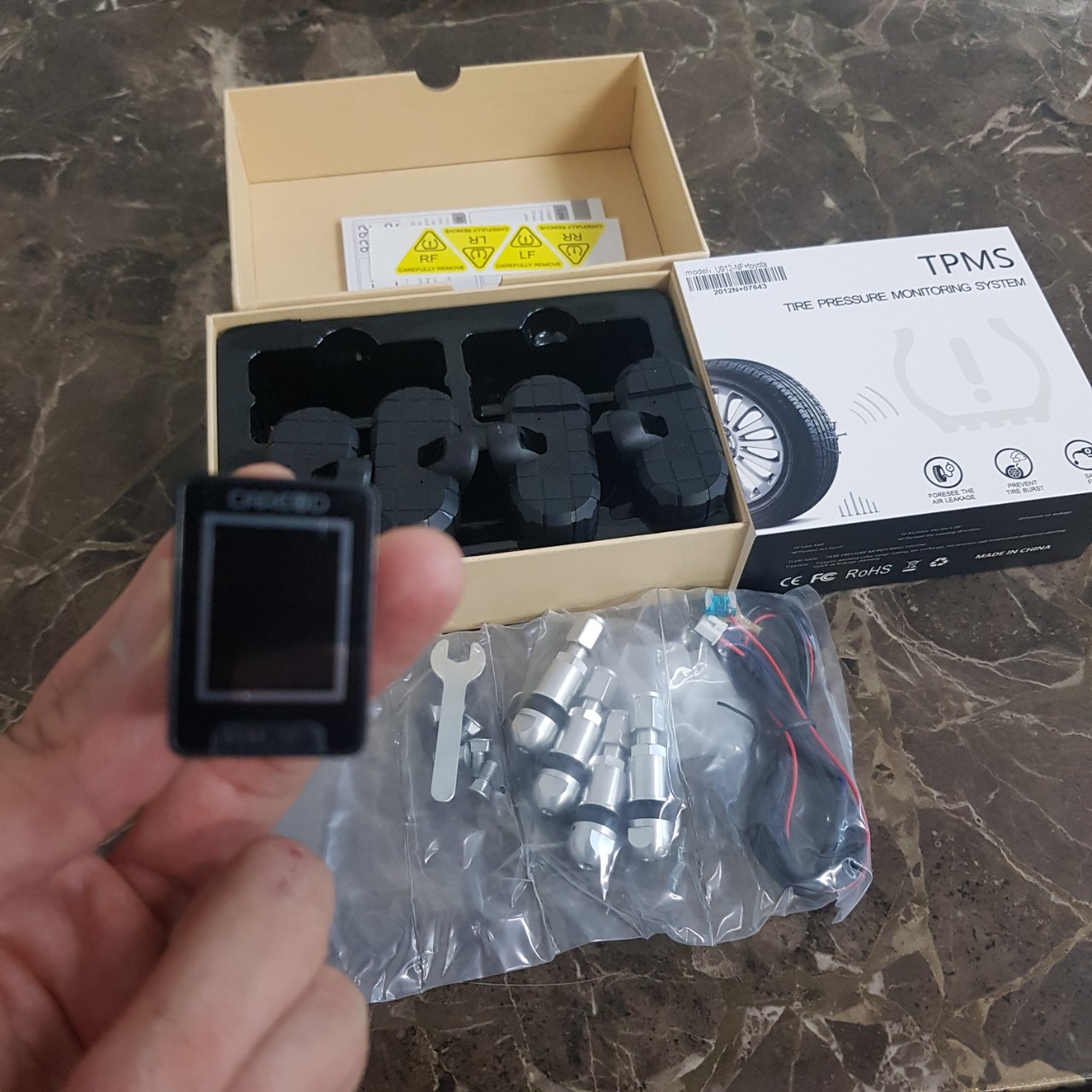 Cảm Biến Áp Suất Lốp Gắn Trong TPMS THÔNG SỐ KĨ THUẬT: - Kiểu màn hình: màn hình màu - Kích thước: 95*82*30mmn - Nhiệt độ làm việc: -20°C+80°C - Chạy bằng năng lượng mặt
