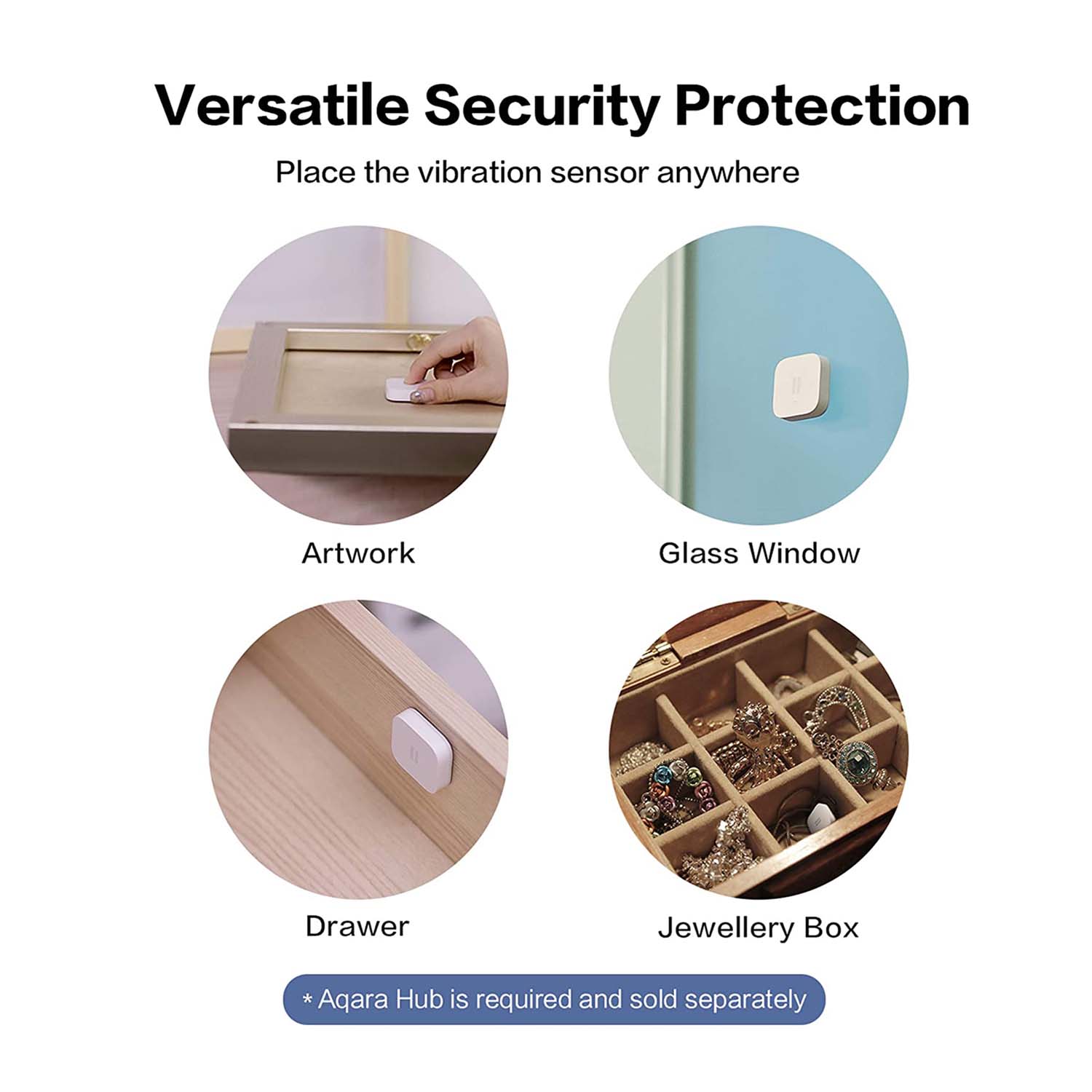 Cuộc sống an toàn hơn với cảm biến rung Aqara Cảm biến rung Aqara, thiết bị giúp người dùng phát hiện nhanh các chuyển động bất thường. Cho phép bạn giám sát và bảo vệ căn nhà của bạn khởi những nguy cơ tìm ẩn từ môi trường xung quanh. Cảm biến rung Aqara là một thiết bị thông minh nằm trong bộ sản phẩm nhà thông minh HomeKit của Aqara. Được sản xuất với mục đích chính là giúp người dùng có thể kiểm soát ngôi nhà của mình. Thông qua những rung động bất thường mà cảm biến ghi nhận được.  Phát hiện nguy hiểm từ các rung động bất thường Bất cứ một tác động lực nào lên một vật đang đứng yên đều tạo ra các rung động theo mức độ từ nhẹ đến mạnh. Và cảm biến rung Aqara cũng hoạt động theo nguyên lý đó. Sử dụng cảm biến gia tốc với độ chính xác cao. Khi phát hiện ra các rung động từ bất thường từ vật thể mà cảm biến được liên kết. Thiết bị sẽ phát tín hiệu đến bộ điều khiển trung tâm. Từ đó phát tín hiệu báo động và đồng thời gửi thông báo đẩy lên điện thoại của người dùng. Giúp người dùng có thể kiểm soát ngôi nhà của mình dù ở bất cứ nơi đâu. Sản phẩm sử dụng kết nối không dây Zigbee, cho phép việc lắp đặt và sử dụng vô cùng đơn giản. Với thiết kế nhỏ gọn (36 x 36 x 9mm). Cùng với miếng dán ở mặt lưng, nên chúng ta có thể lắp đặt ở bất cứ đâu bạn thích từ cửa sổ, cửa chính, ngăn kéo đến bình hoa.  Cảm biến rung Aqara hỗ trợ 3 mức cảm biến lực khác nhau Thông qua ứng dụng trên điện thoại, người dùng có thể thiết lập mức độ cảm biến khác nhau cho từng khu vực trong nhà. Việc này giúp nâng cao độ chính xác của cảm biến. Cũng như hạn chế những báo động không mong muốn gây ra bởi những tác nhân vô hại như trẻ con hoặc thú cưng. Cảm biến Aqara sử dụng pin CR2032 lắp bên trong. Cho thời gian sử dụng kéo dài lên đến 2 năm. Cho phép bạn sử dụng thoải mái mà không lo vấn đề hết pin. Nhắc nhở an ninh, chăm sóc đồ đạc của bạn. Khi phát hiện rung, nghiêng hoặc rơi. Cảm biến rung Aqara sẽ kích hoạt Hub phát âm báo thức và gửi thông báo đến điện thoại của bạn.