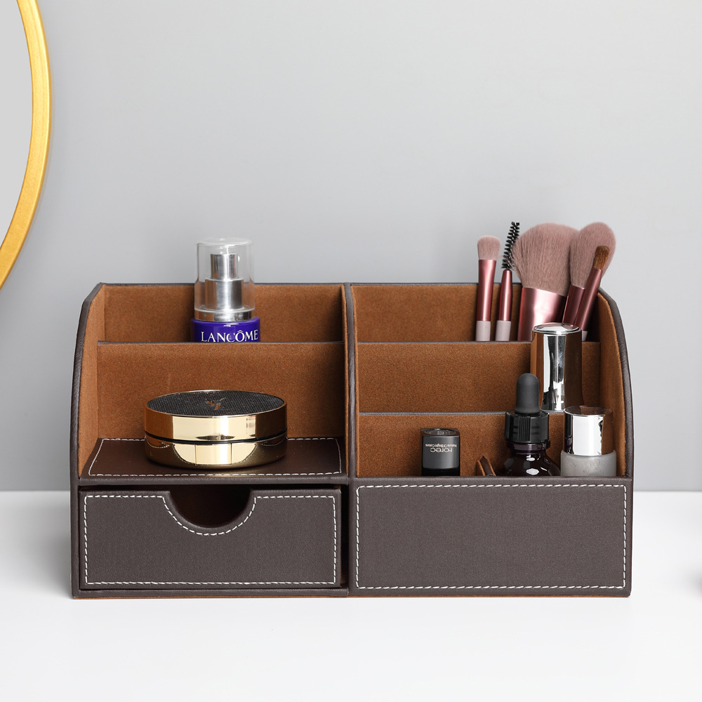 Khay cắm bút bằng da cao cấp rất cần thiết giúp cho bàn làm việc nơi công sở được ngăn nắp, gọn gàng. Hiện nay, chất liệu da đang được rất nhiều cá nhân, đơn vị doanh nghiệp ưa chuộng vì chúng đem lại sự sang trọng, bền và đẹp.   Tiện lợi, gọn gàng Văn phòng phẩm bằng da cao cấp sẽ giúp môi trường làm việc, không gian của bạn trở nên gọn gàng, tiện lợi cũng như đẹp mắt hơn khi sử dụng. Thiết kế đa dạng kiểu dáng và phù hợp với nhiều lĩnh vực khác nhau, tùy theo kích thước cũng như vật dụng cần đựng mà có thể thiết kế khay kệ kích thước cho hợp lý, thuận tiện nhất để bạn có thể dễ dàng lấy đồ dùng cần thiết ngay trong tầm tay.    Chất liệu bền đẹp, dễ dàng vệ sinh Với chất liệu gỗ mdf cao cấp và bọc da pu/simili giúp cho sản phẩm luôn sạch sẽ, để lâu, bảo quản tốt lớp da sẽ bóng và đẹp hơn. Dễ dàng vệ sinh khi có vết bẩn hoặc bụi bám chỉ cần lau nhẹ bằng khăn sẽ mang lại bề mặt bóng loáng như mới. Văn phòng phẩm bằng da cao cấp thiết kế chắc chắn, có khả năng chịu lực tốt nên thời gian sử dụng bền lâu, khó có thể bể nứt, gãy, Bên ngoài còn được bọc cả lớp da thật hoặc da simili giúp cho sản phẩm càng trở nên sạch sẽ hơn. Văn phòng phẩm bằng da cao cấp nâng tầm không gian xung quanh Đối với những người đam mê các sản phẩm may da, họ sẽ muốn sở hữu cho mình trọn bộ các sản phẩm từ da để thể hiện sự sang trọng, đẳng cấp của mình như: Khay da, sổ da, hộp da,ều chủ doanh nghiệp, công ty thường sử dụng các sản phẩm da cao cấp in ấn logo thương hiệu công ty mình để thể hiện sự sang trọng, chuyên nghiệp.  Việc kết hợp các đặc điểm nổi bật của đồ dùng văn phòng phẩm bọc da một cách hài hòa, cân đối sẽ giúp căn phòng, bàn làm việc của bạn trở nên nổi bật, tinh tế, gây ấn tượng mạnh với mọi người xung quanh.