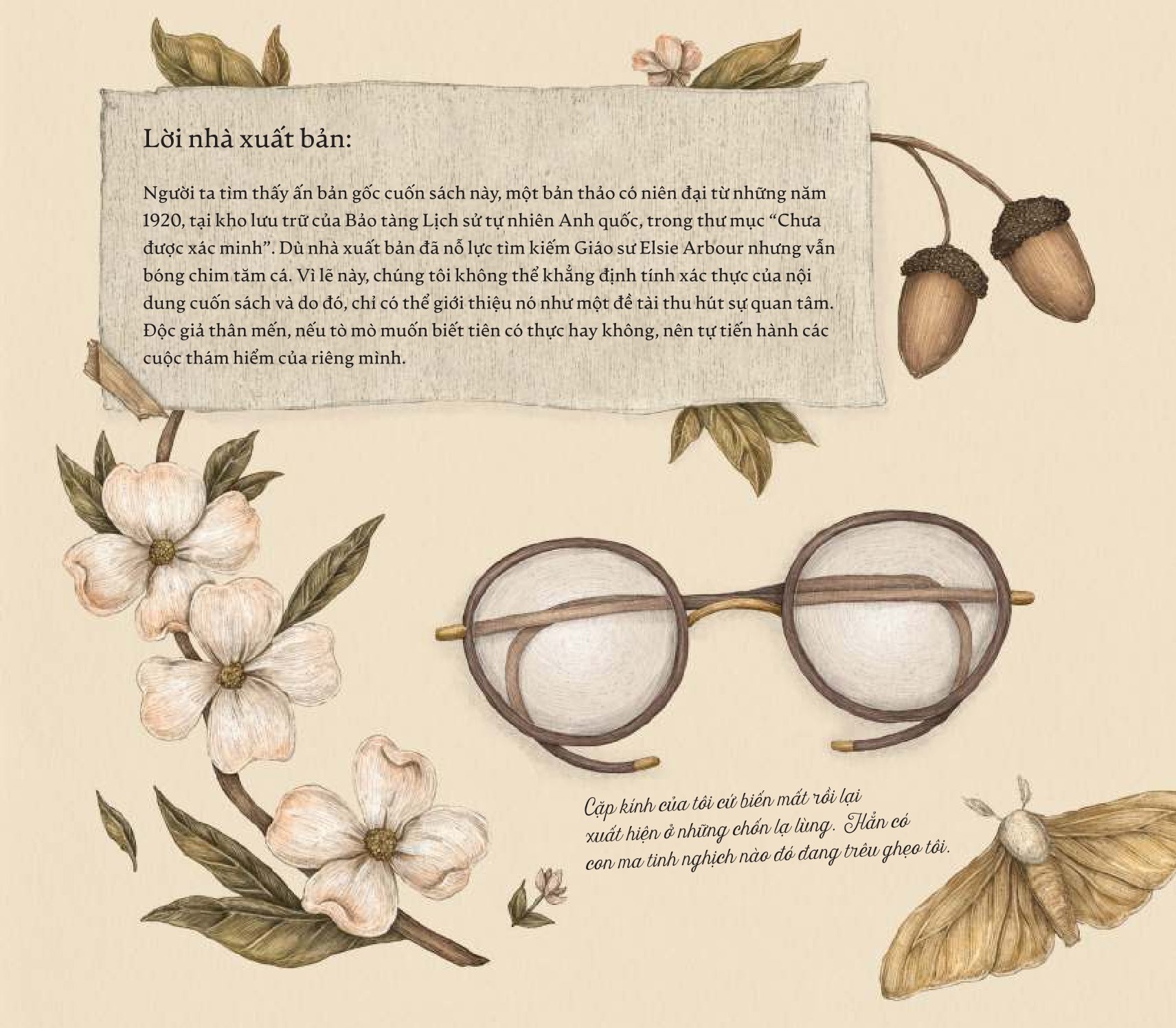 Đó là lời mời gọi khám phá thế giới diệu kì quanh ta: nơi phép thuật cổ xưa vẫn len lỏi trong nắng gió, những sinh vật huyền bí ẩn mình giữa núi rừng, và loài tiên tí hon thì thầm trong vườn hoa. Với minh họa mê hoặc và ghi chép chi tiết từ các "nhà thám hiểm" bí ẩn, bộ sách như một chuyến phiêu lưu thấm đẫm trí tưởng tượng, tri thức và niềm tin vào điều kì diệu, dành cho những ai còn tin rằng thế giới này vẫn còn điều để kinh ngạc.