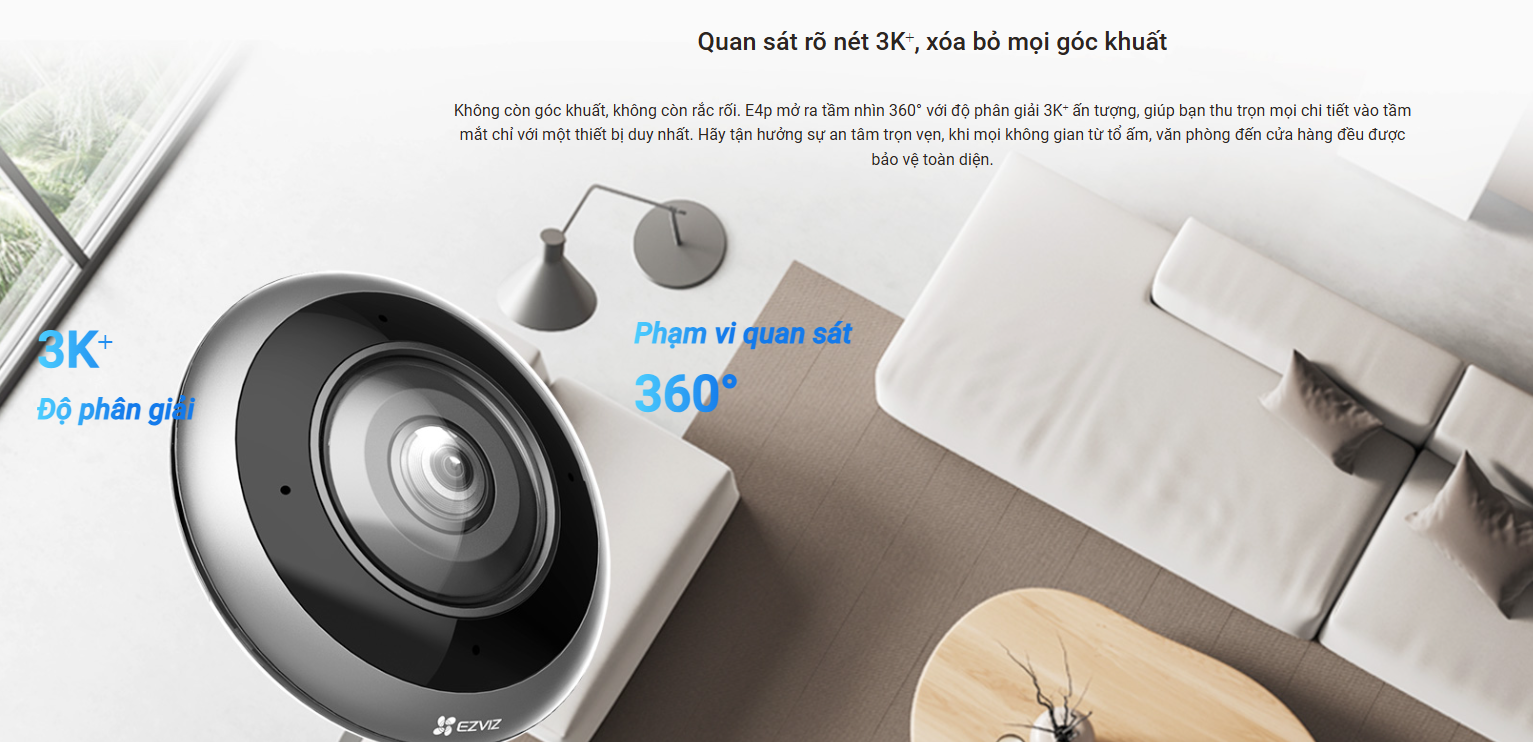 Camera mắt cá EZVIZ 360 độ ghi hình toàn cảnh, loại bỏ điểm mù. Công nghệ khử cong hình ảnh mang lại video chân thực, không méo mó. Bạn có thể quan sát mọi góc chỉ với một thiết bị. Tính năng này lý tưởng cho không gian rộng như phòng khách, văn phòng.