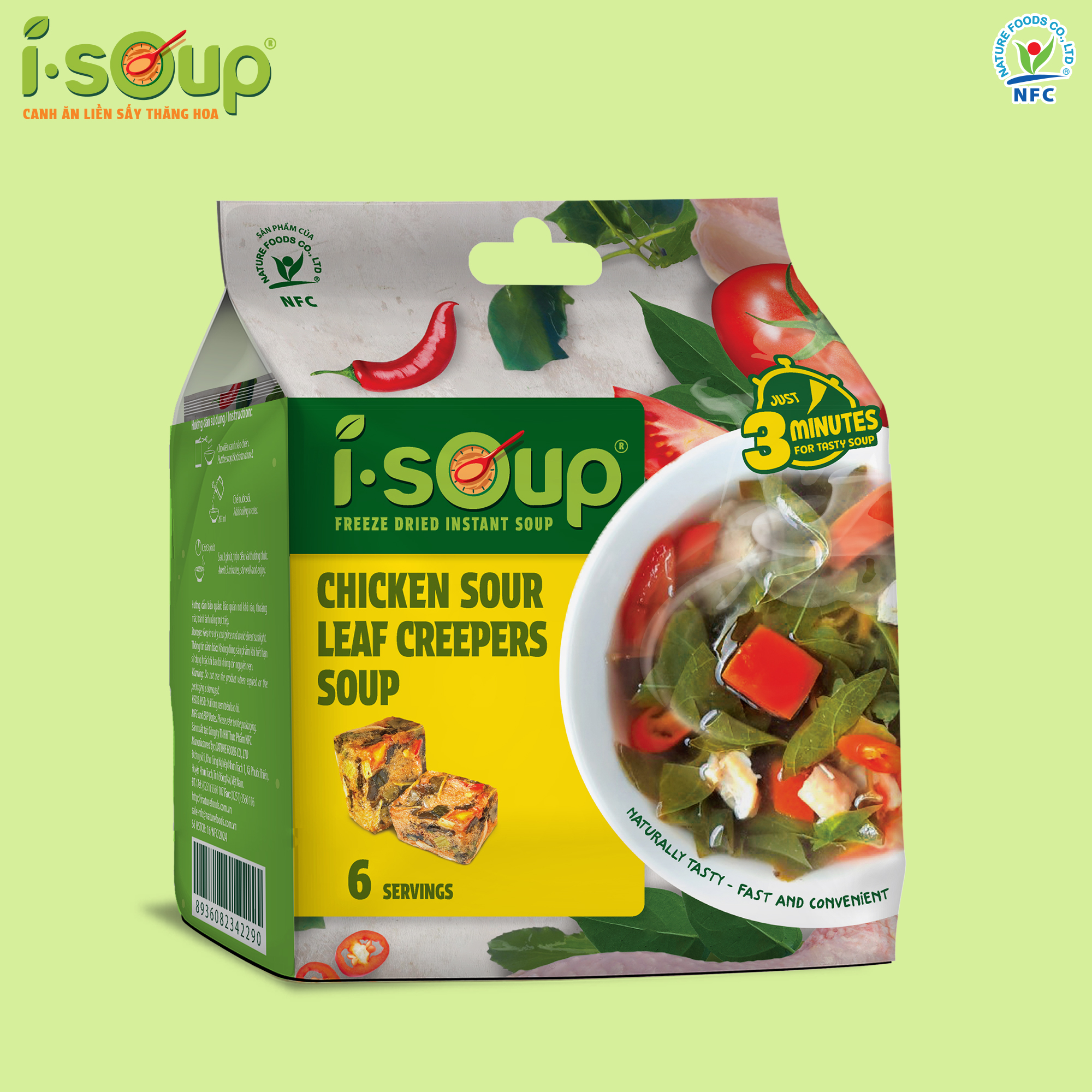 Canh Gà Lá Giang Ăn Liền ISOUP 72g 06 Viên - Viên Canh Ăn Liền Sấy Thăng Hoa I.SOUP Canh gà lá giang là món canh chua quen thuộc trong mâm cơm của gia