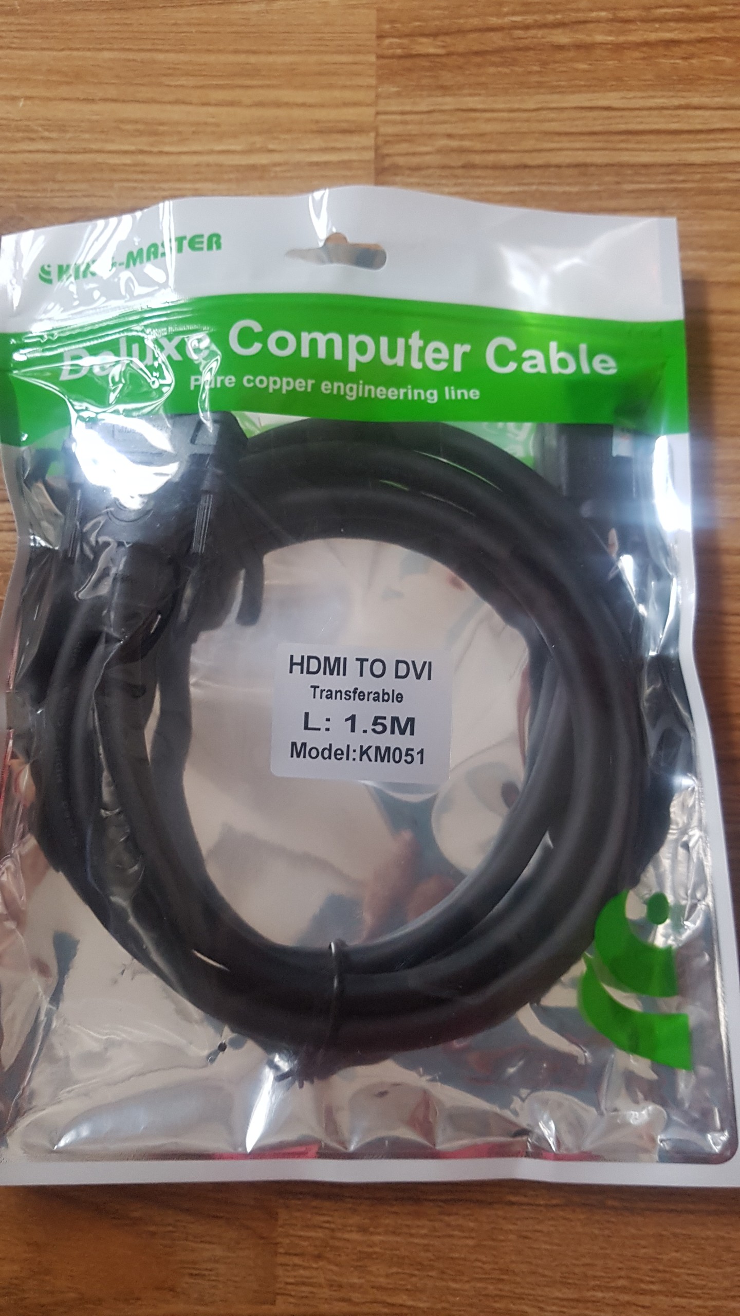 Mua tại TiktokCáp HDMI -> DVI (24+1) 1.5m KM051 Cáp chuyển đổi trực tiếp từ HDMI sang DVI 24-1 (DVI chuẩn D ) Và ngược lại. Cáp đi 2 chiều Chiều dài : 1.5m *Lưu ý: Vì cổng DVI có nhiều loại đầu khác nhau, quý khách vui lòng xem kỹ cũa mình thuộc loại nào để mua đúng sản phẩm Vì DVI cắm đúng chuẩn thì mới xuất được hình, cắm sai vẫn cắm được nhưng không xuất ra hình